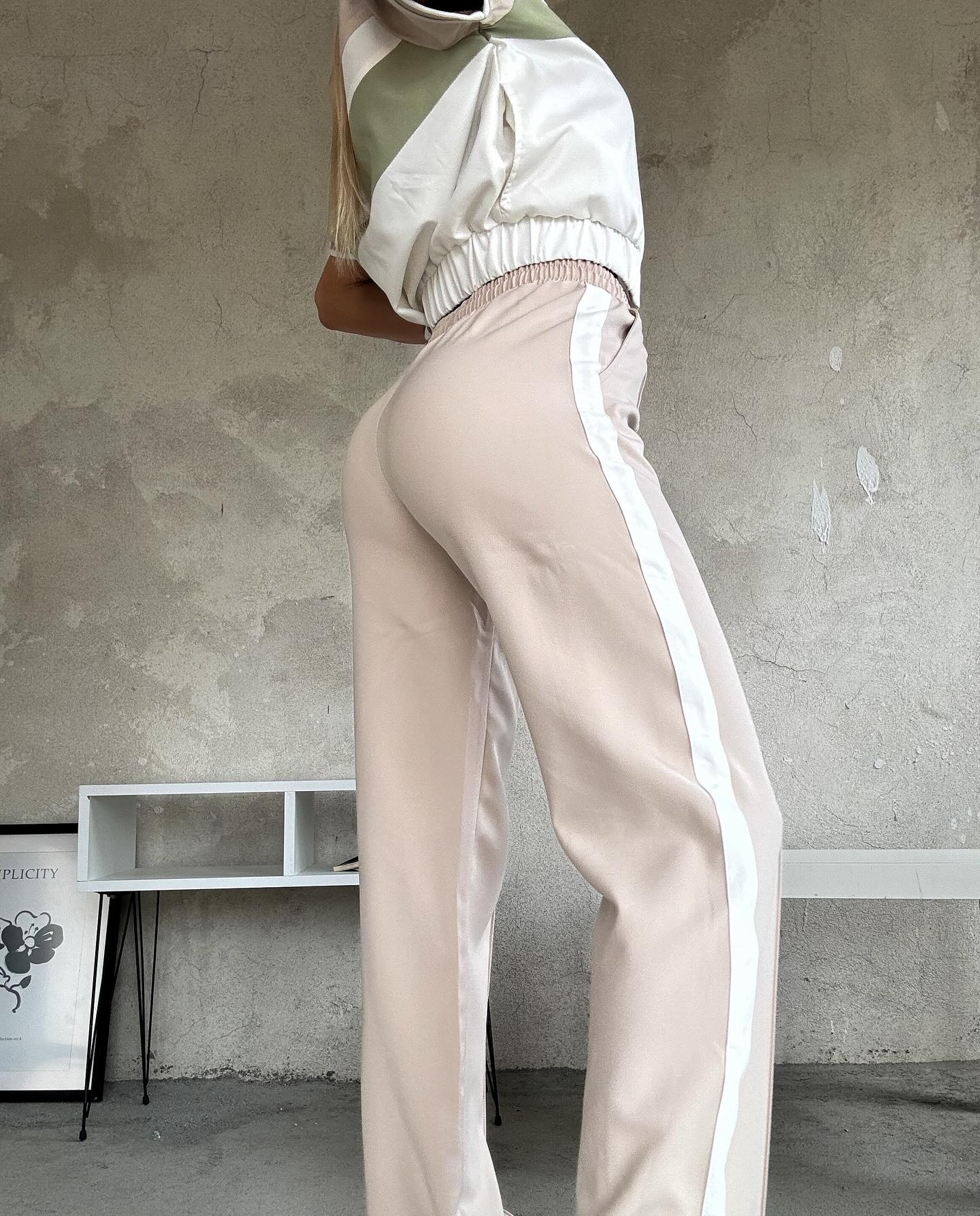 - Долнище с еластична талия и широки крачоли с бяла странична линия за допълнителен стил.
