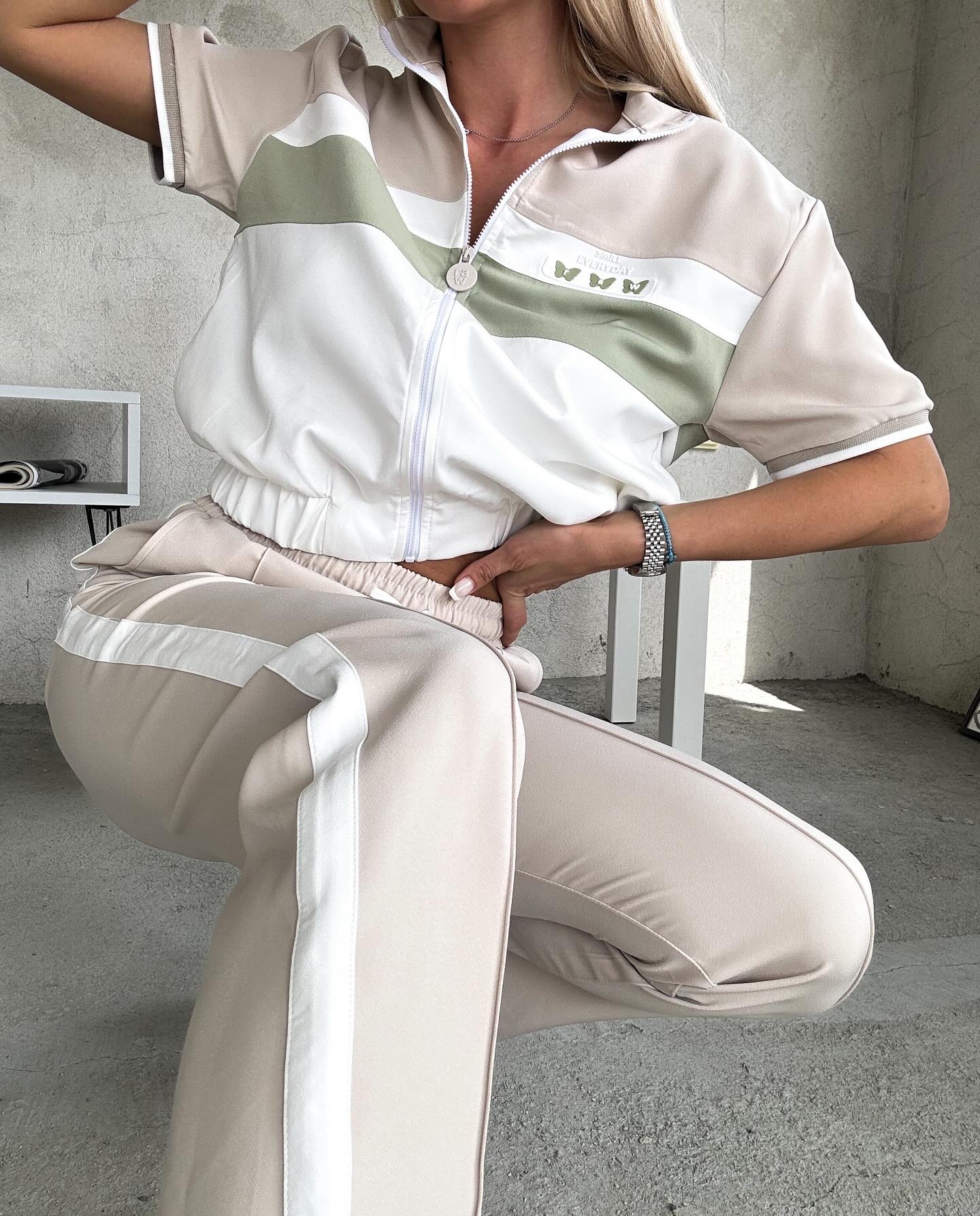 Представяме ви нашия стилен бежово-зелен комплект, който ще добави свежест и елегантност към вашия гардероб.