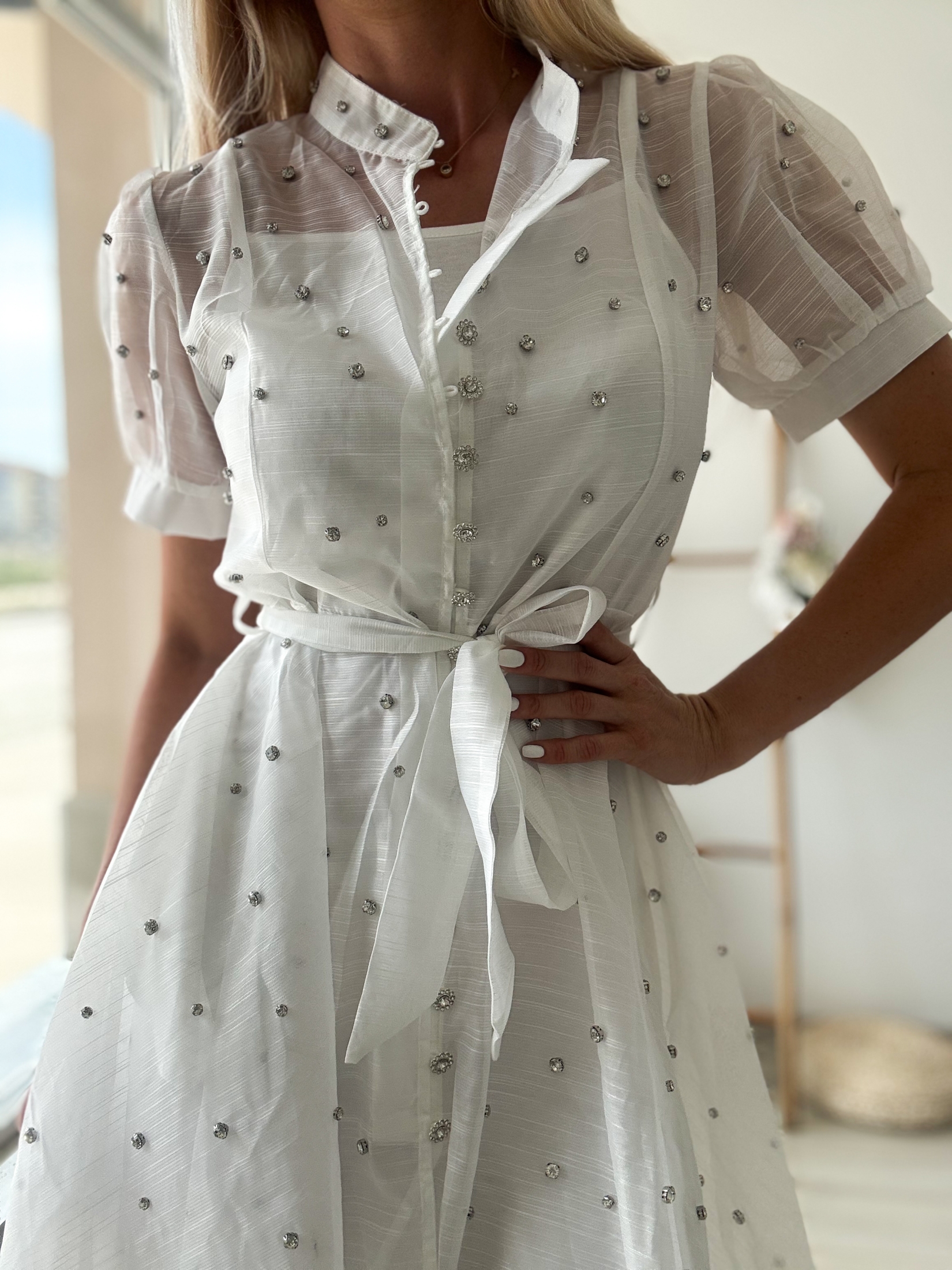 Представяме ви очарователната рокля от органза с камъни, която е идеална за специални поводи и моменти, в които искате да блеснете!