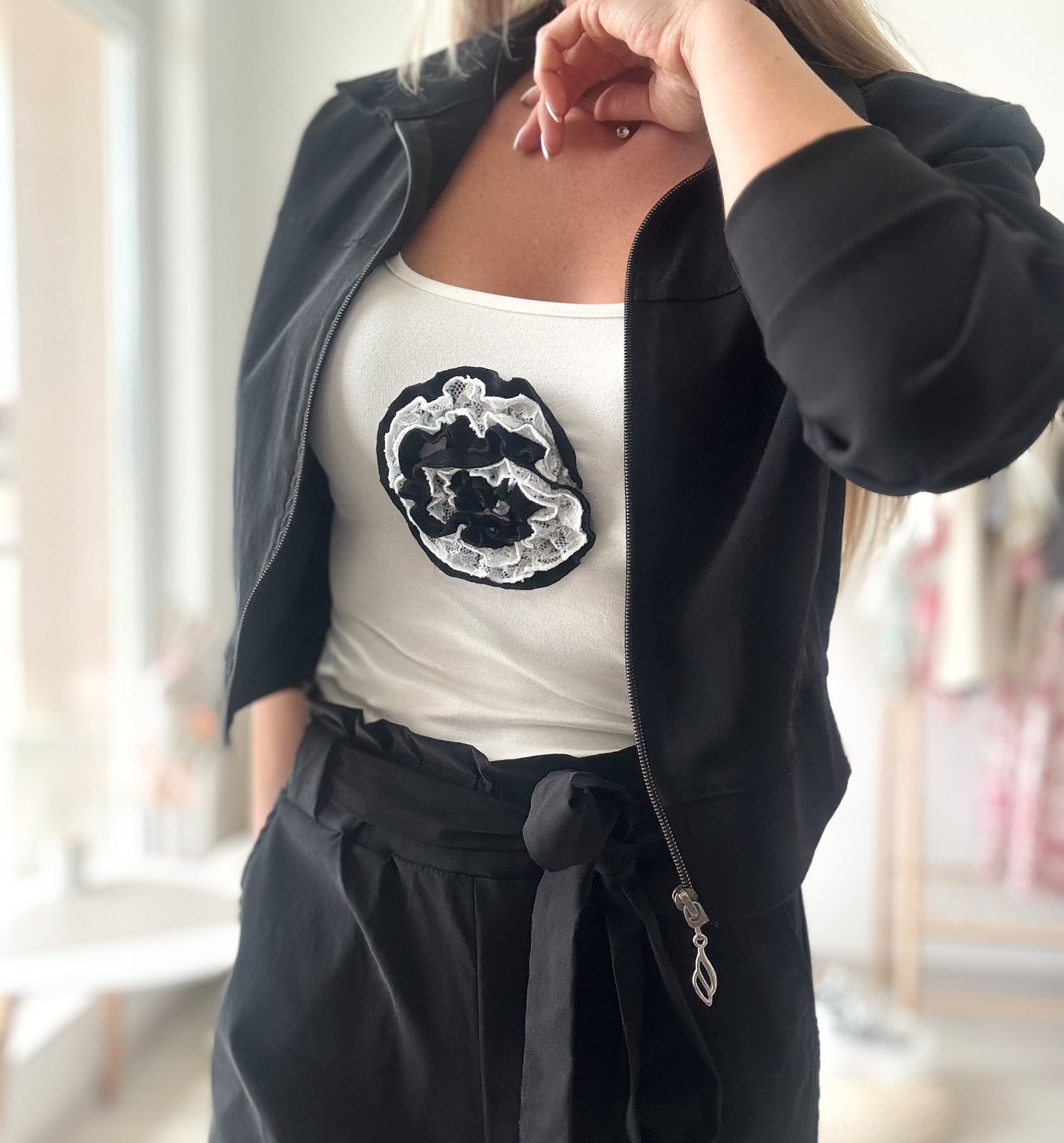 Представяме ви нашия елегантен черен сет яке и панталон, перфектната комбинация от стил и комфорт. Този сет е идеален за всеки повод, независимо дали става въпрос за бизнес среща или небрежна разходка в града.