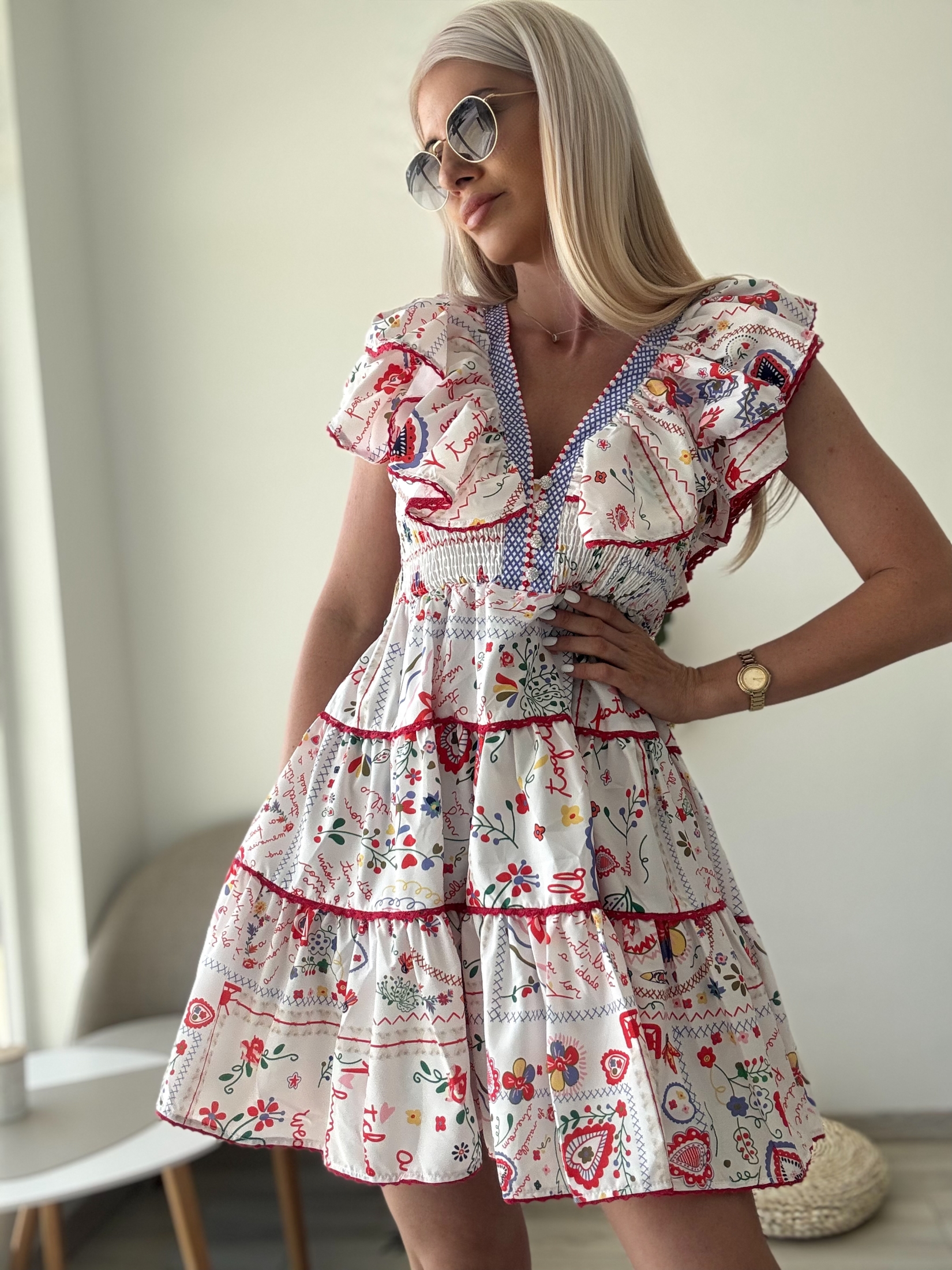 - Дизайн: Многопластова, с къдрици и еластична талия за подчертаване на фигурата.