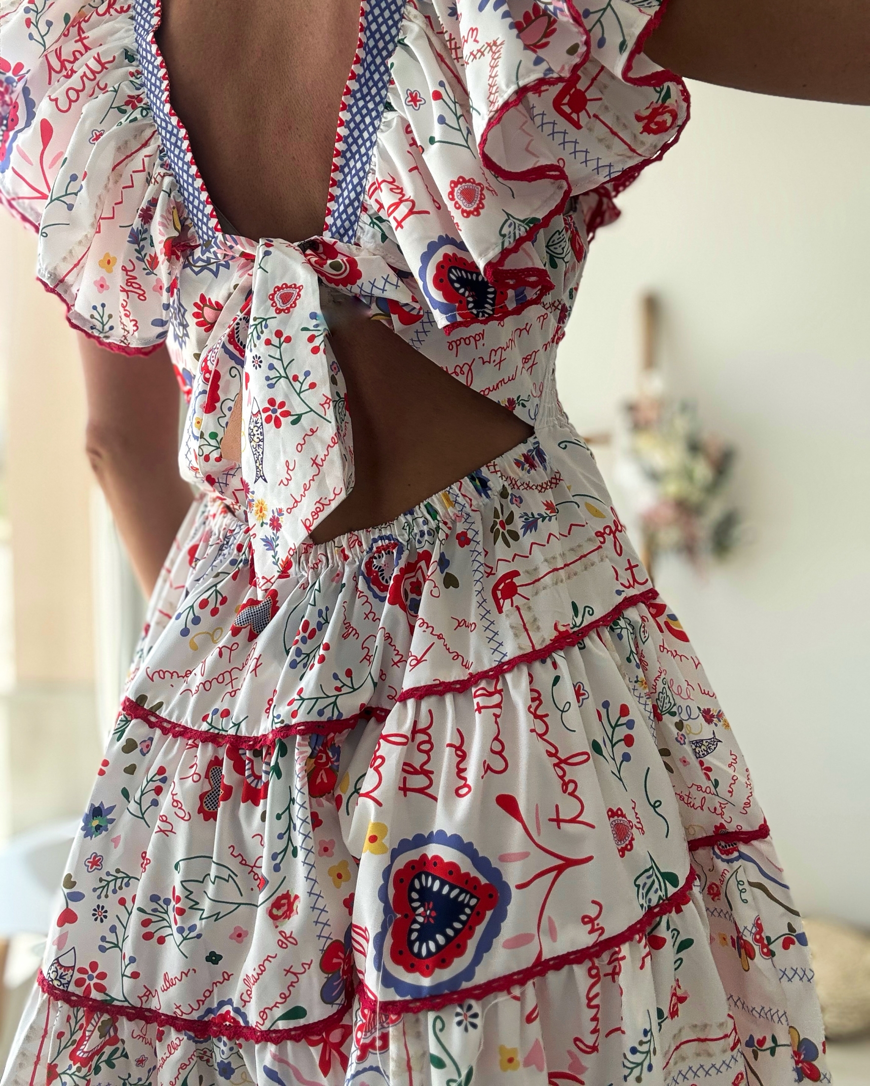 Представяме ви нашата очарователна червена рокля с надписи, перфектното допълнение към вашия гардероб! Тази рокля съчетава закачлив дизайн с удобна кройка, което я прави идеален избор за всеки повод.