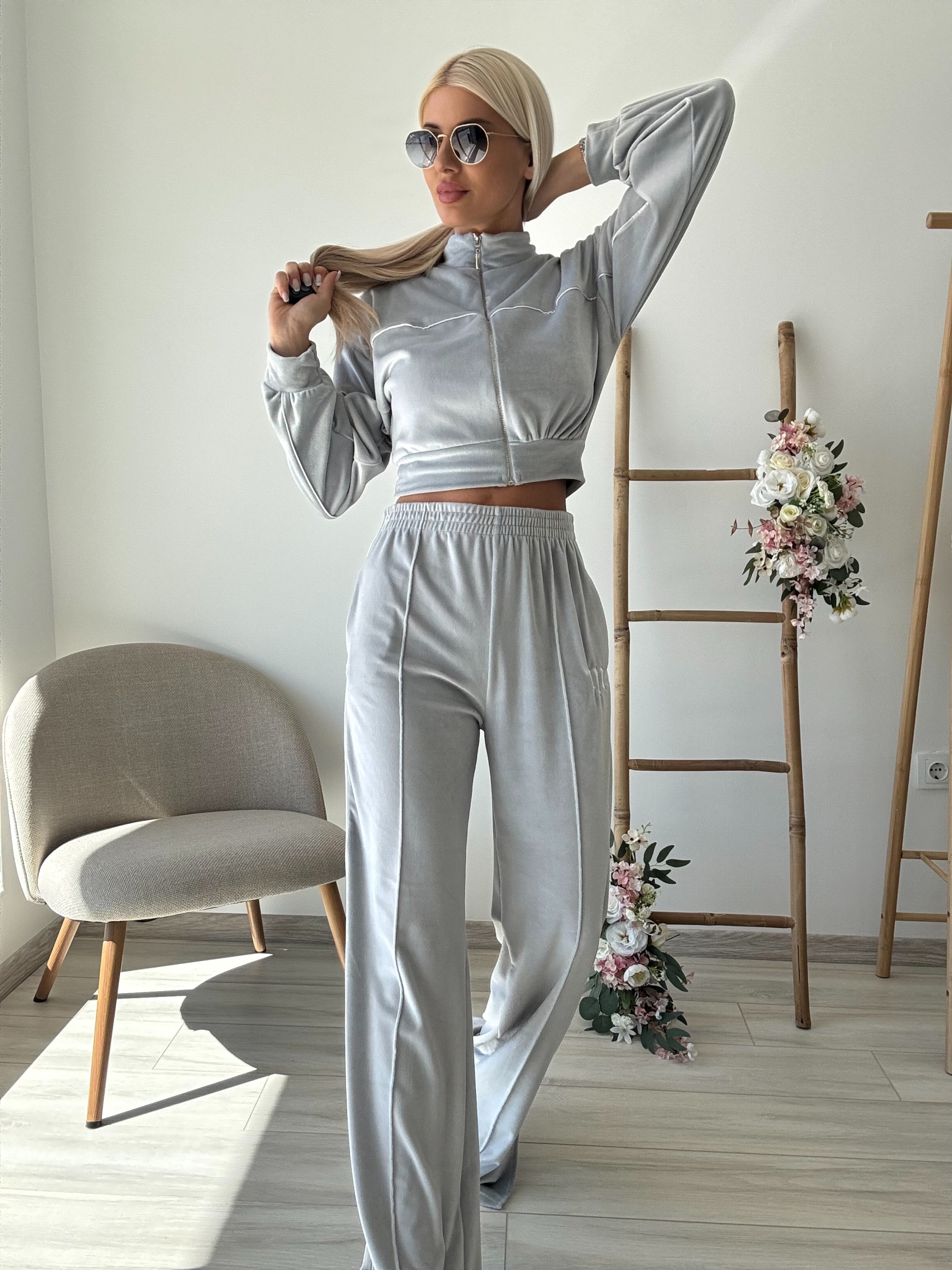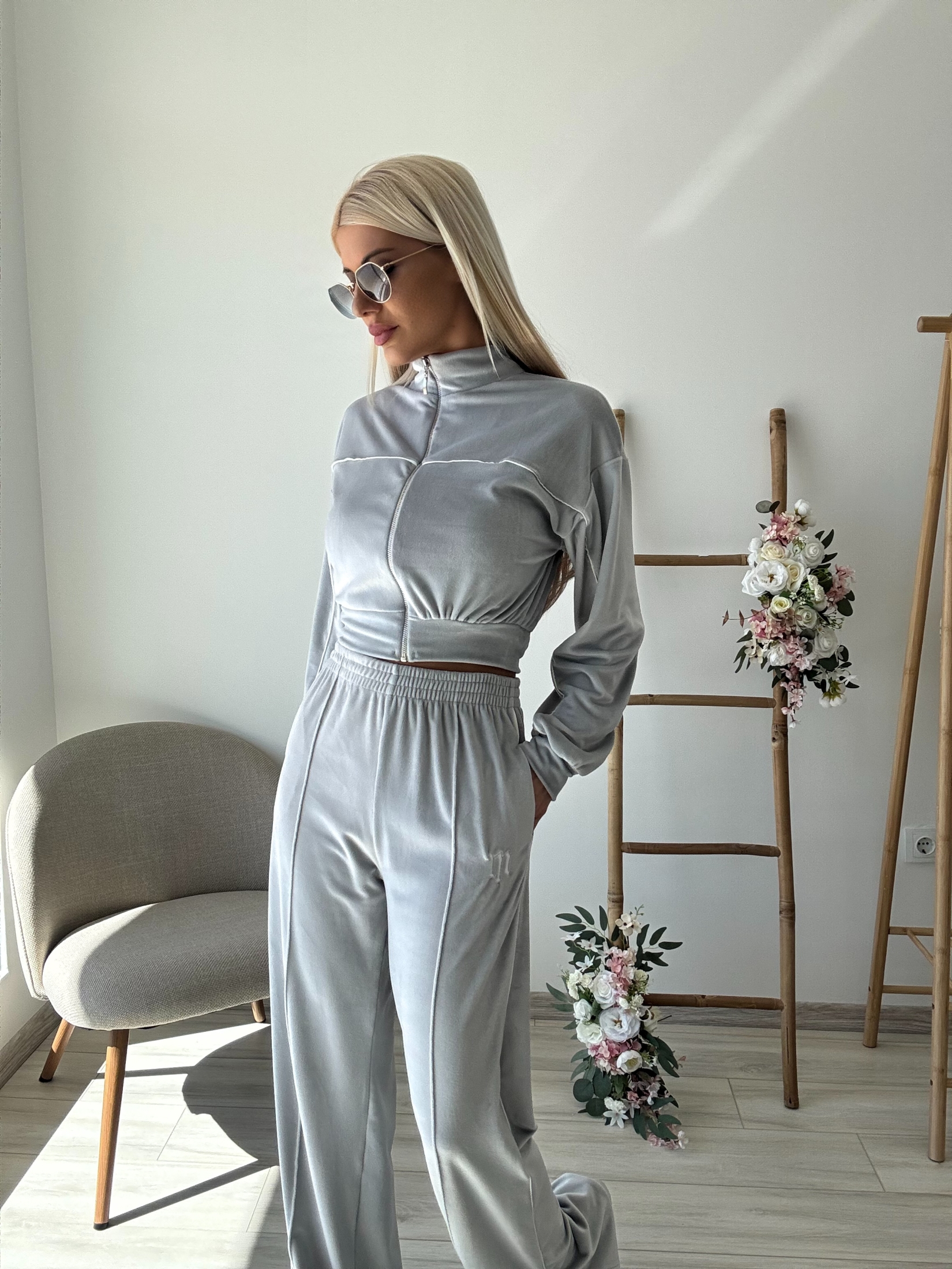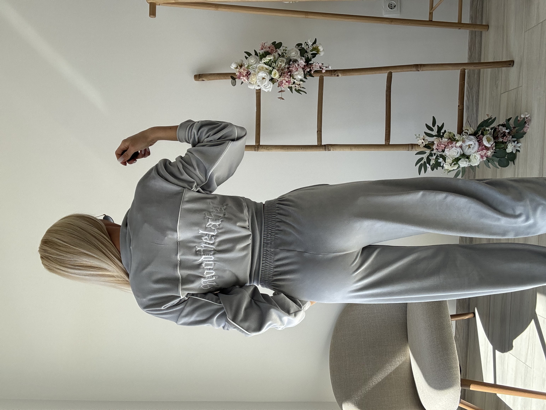 Потопете се в лукс с нашия сив плюшен комплект. Елегантен и удобен, той е идеалният избор за стилни дни и вечери.