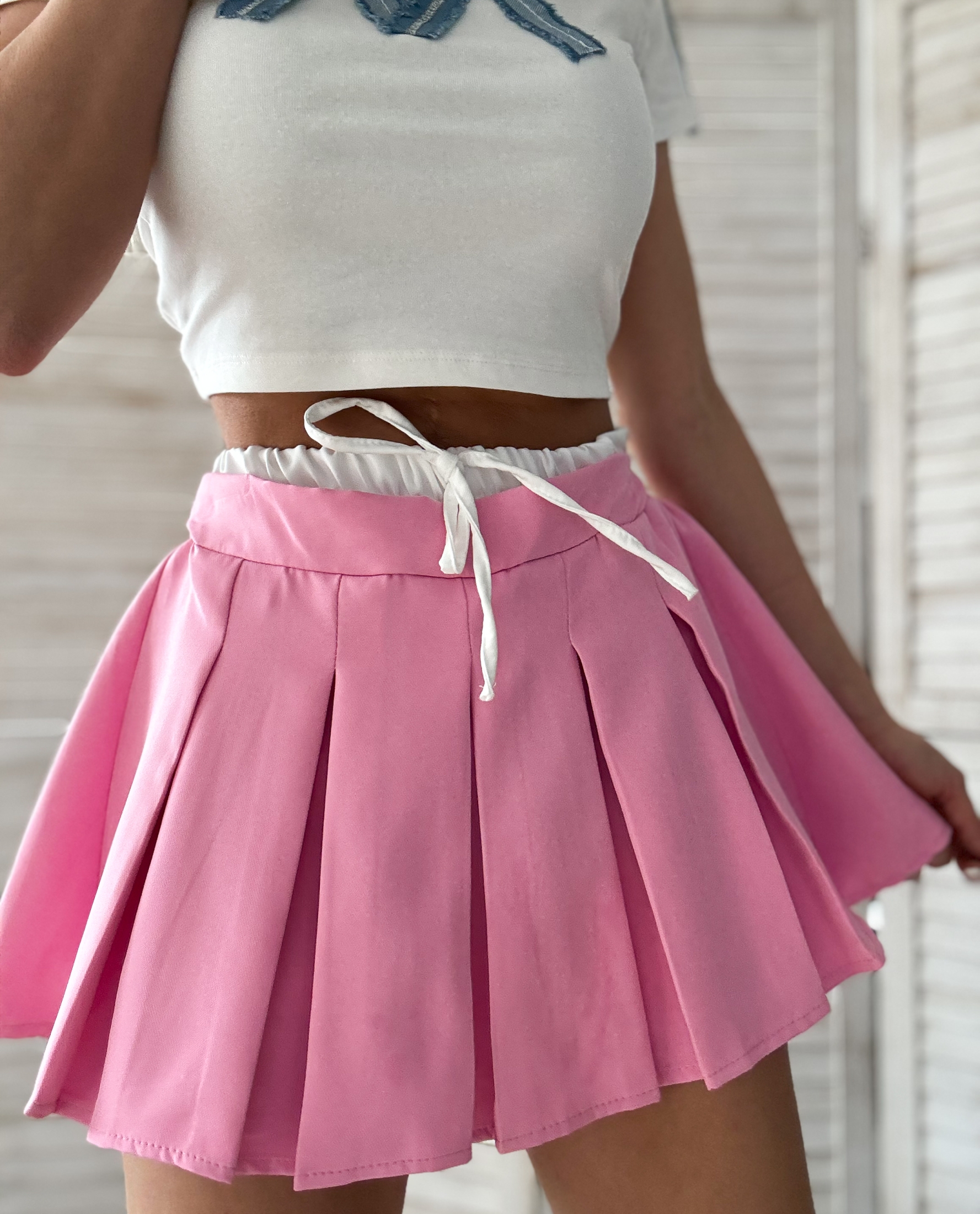 Очарователна розова плисирана пола, идеална за създаване на свеж и закачлив вид! Подходяща за размери от XS до M, тази пола е чудесен избор за различни поводи. Съчетайте я с любимия си топ за стилна визия.