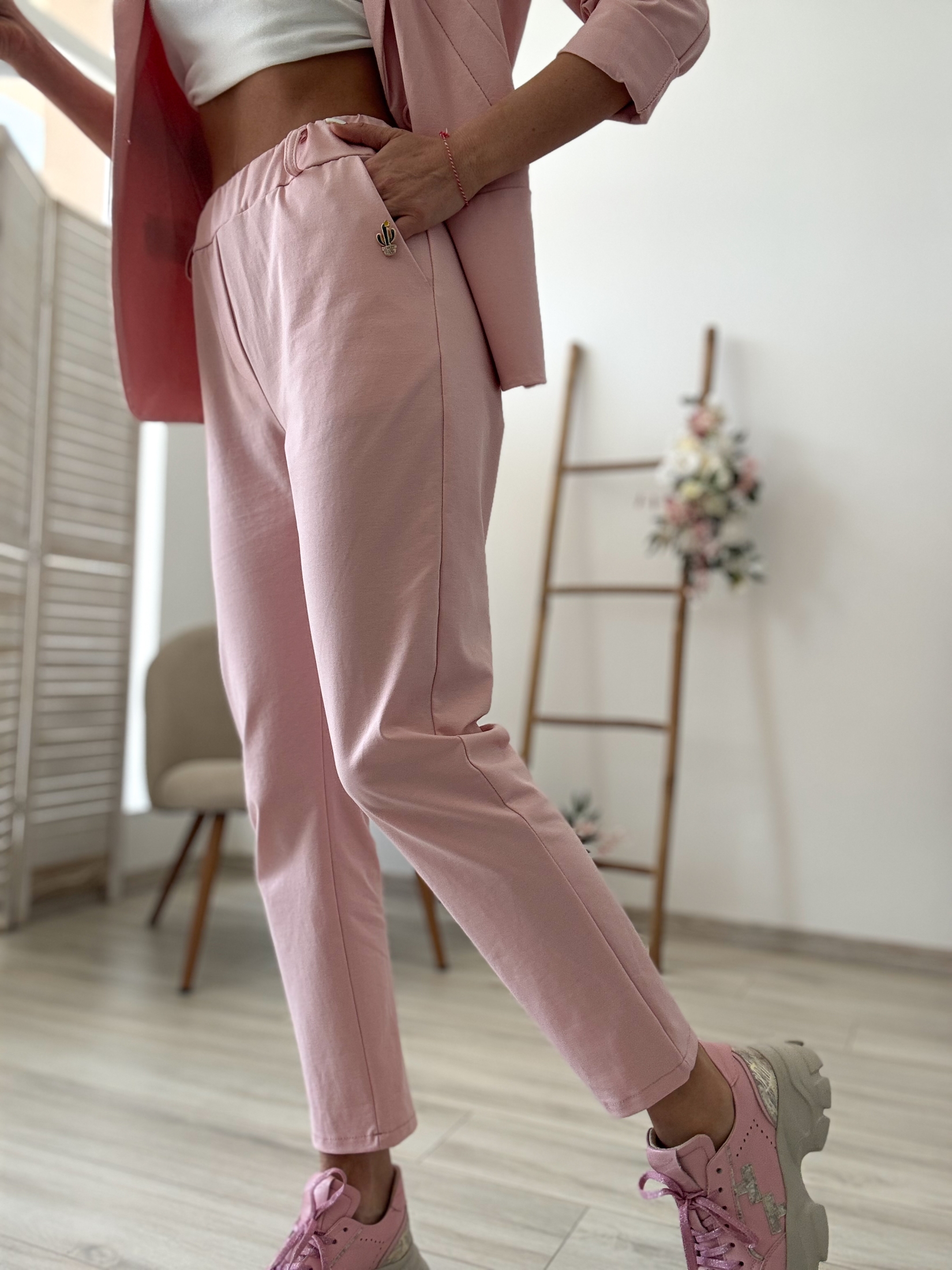 Розов комплект панталон и сако