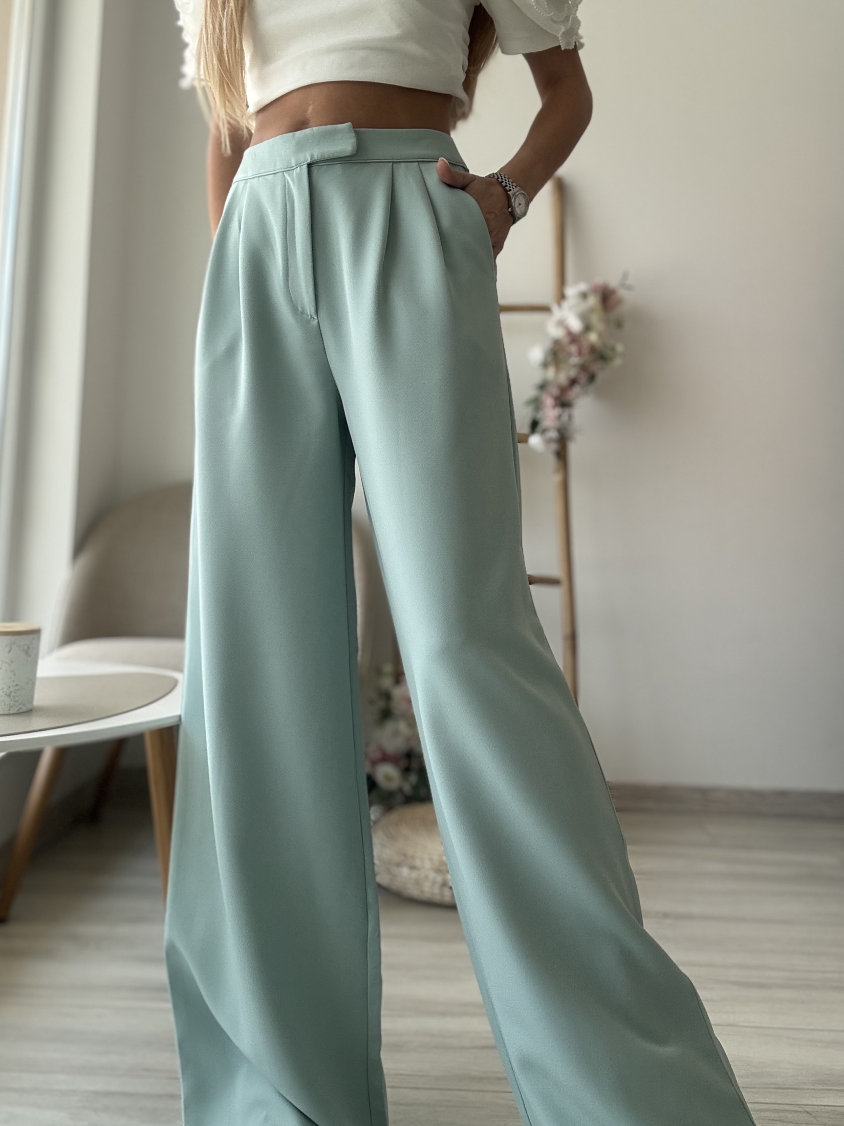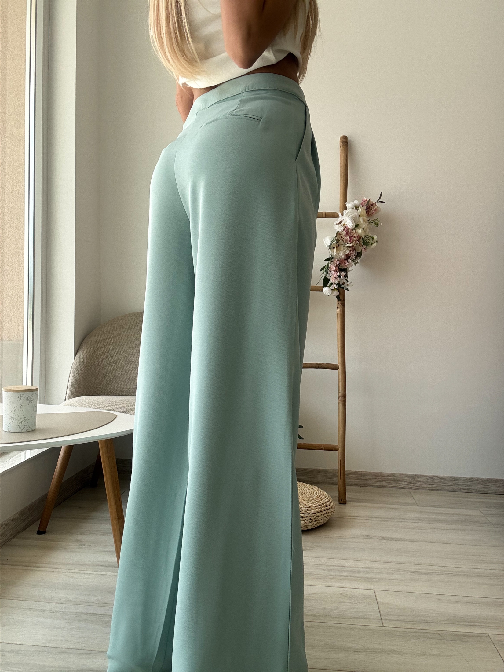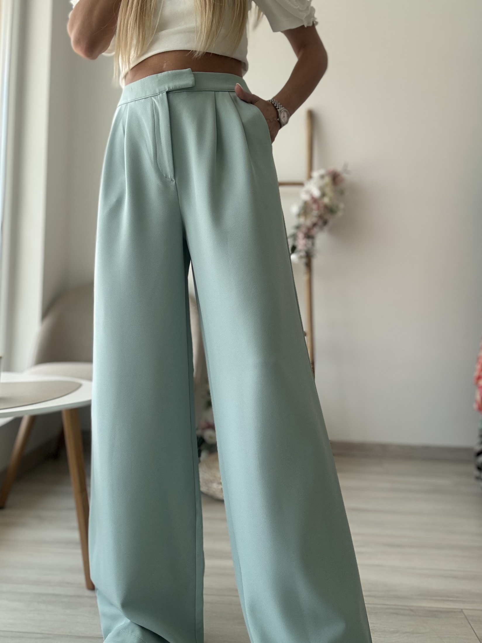 Освежете гардероба си с нашия ментов широк панталон. Идеален за създаване на елегантна и модерна визия.