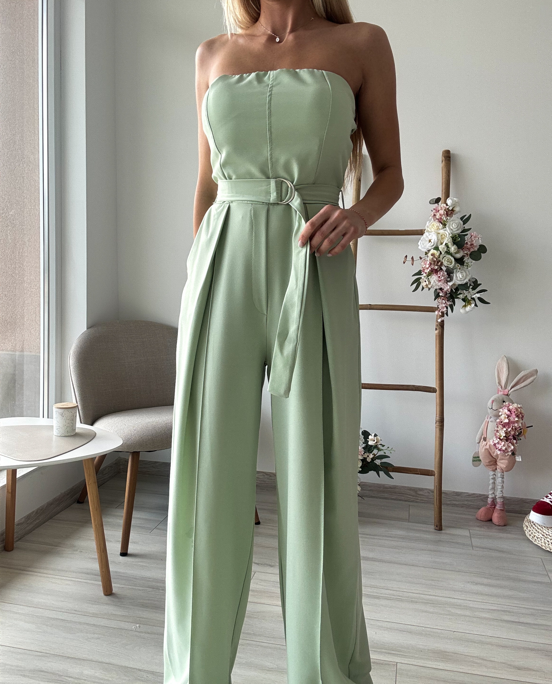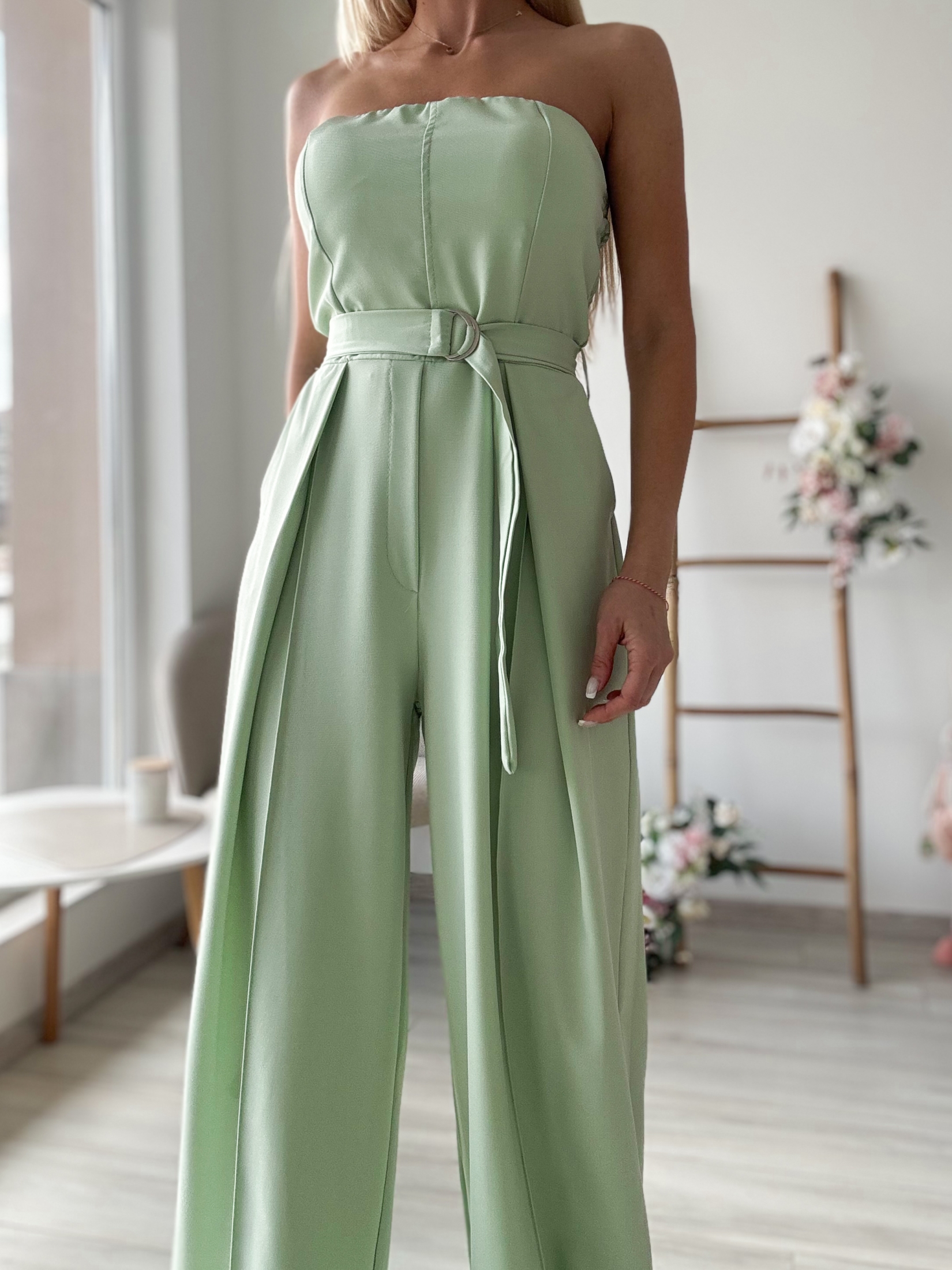 Представяме ви нашия елегантен ментов гащеризон, перфектната комбинация от стил и комфорт за всеки повод. Този гащеризон е проектиран да подчертава вашата фигура и да ви осигури увереност и елегантност през целия ден.