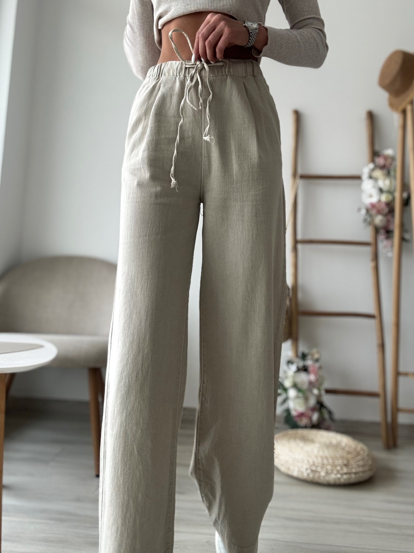 Бежови дънки с връзка