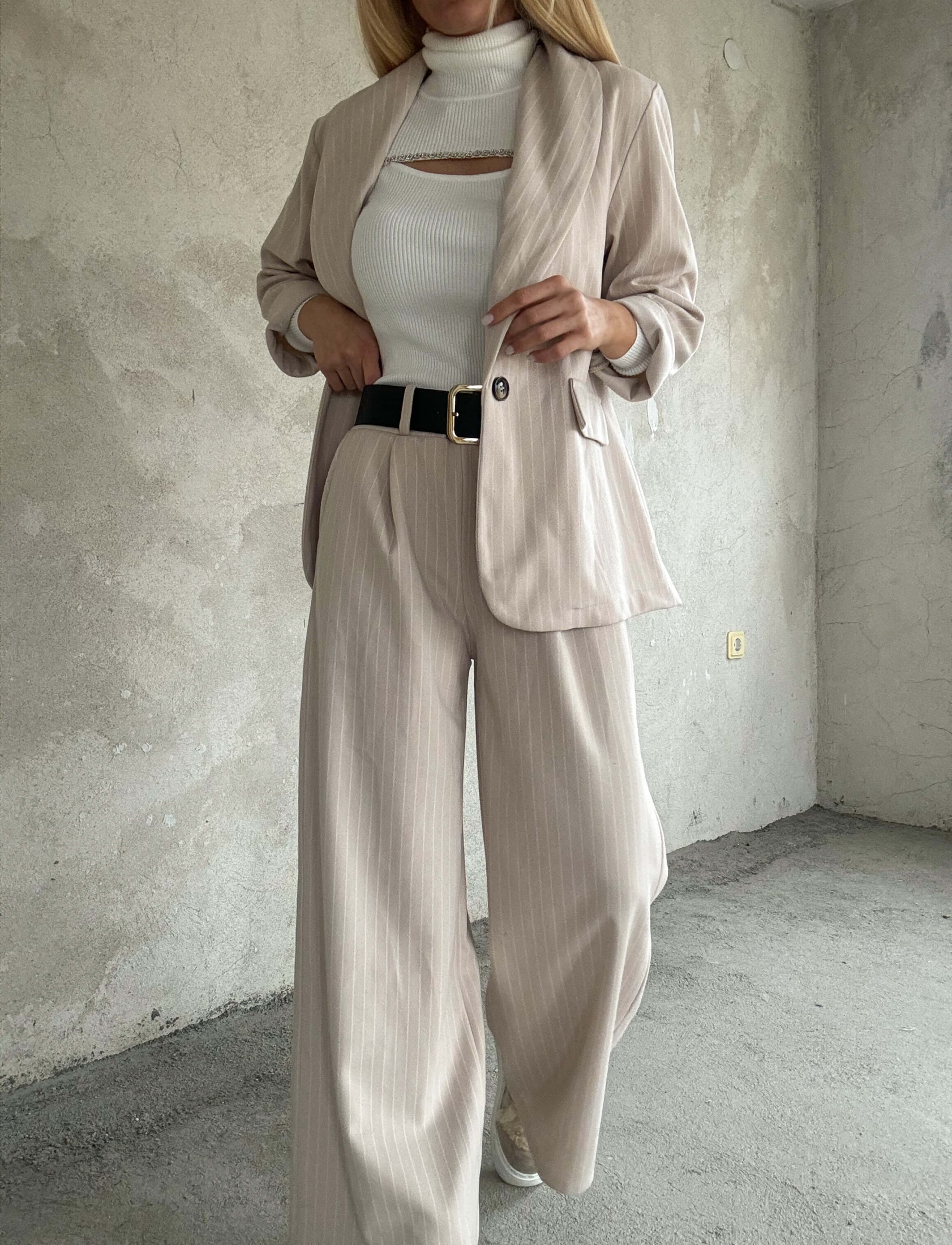 Представяме ви нашия елегантен бежов панталон с колан, перфектното допълнение към вашия гардероб! Независимо дали сте на работа, на среща или просто се наслаждавате на деня, тези панталони ще ви осигурят стил и комфорт.