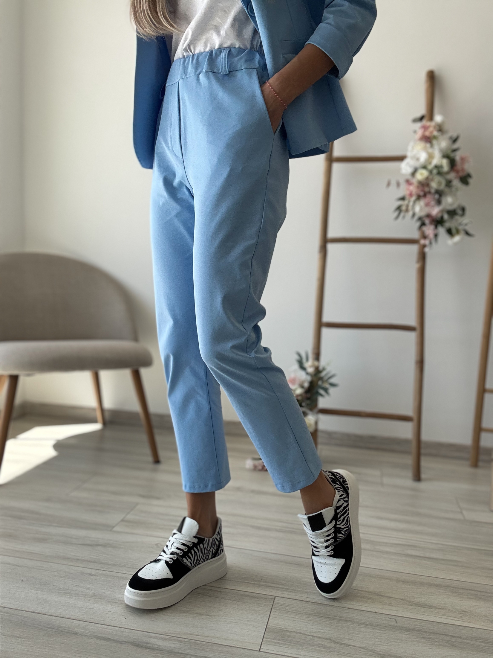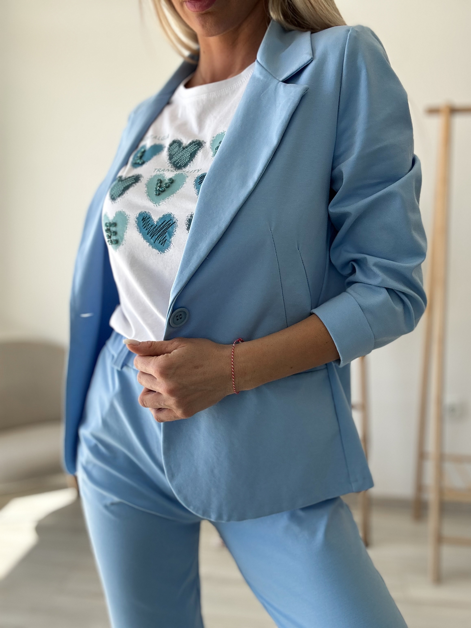 Син комплект сако и панталон
