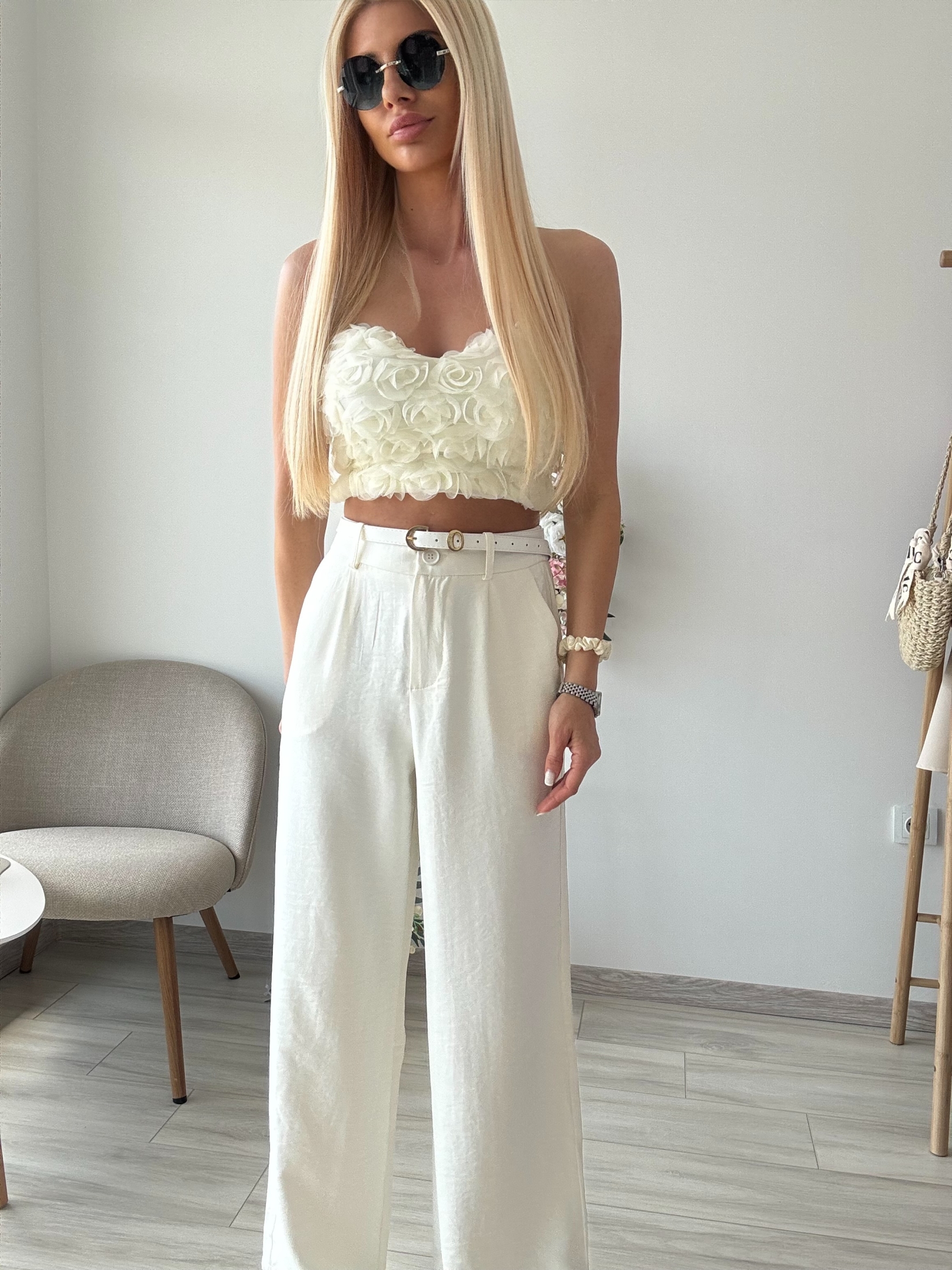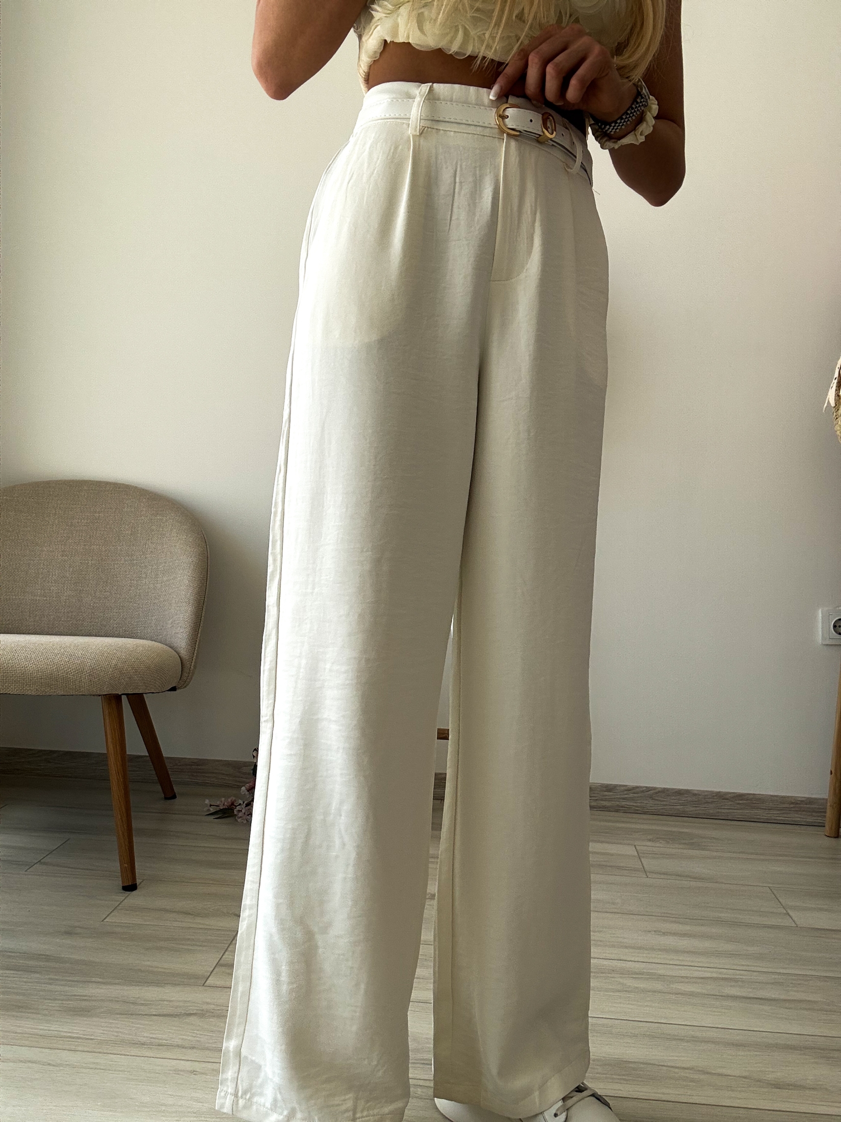 Бял сатениран панталон с колан – Елегантност и комфорт в едно