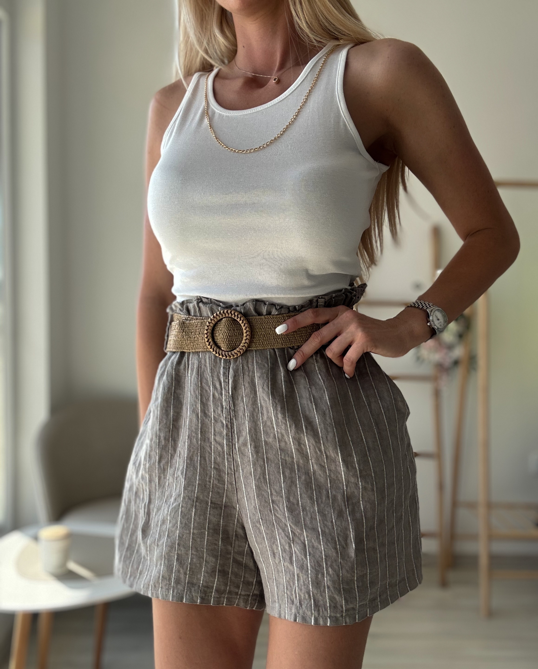 Ленът е известен със своите естествени свойства – той е дишащ, антибактериален и хипоалергенен. Нашият ленен къс панталон не само ще ви осигури комфорт, но и ще се грижи за вашата кожа. Шоколадовият цвят е универсален и лесно се съчетава с други цветове, което го прави незаменим елемент от вашия гардероб.