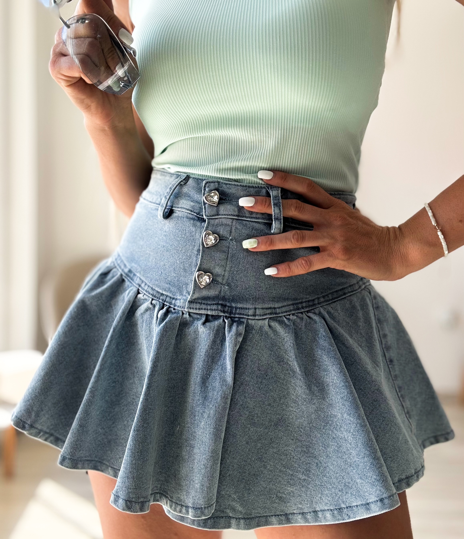 Начало Дънки и панталони Дънкова пола панталон с копче сърце