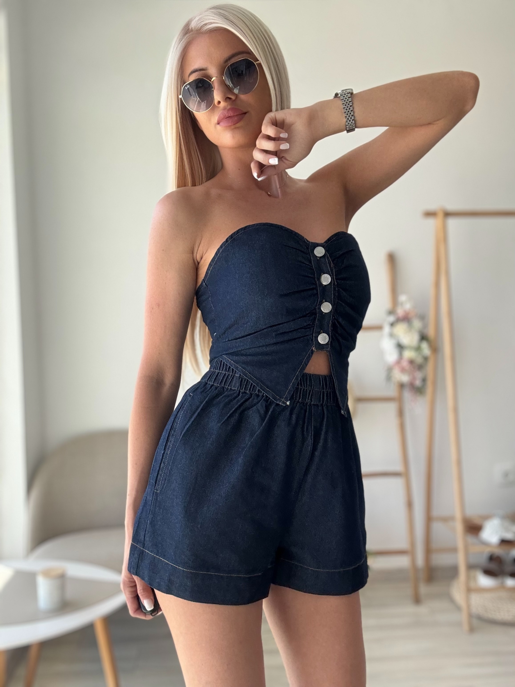 Елегантен индиго комплект с бюстие, идеален за специални поводи или стилна визия в ежедневието. Бюстието подчертава силуета, а наситеният цвят индиго придава изисканост.