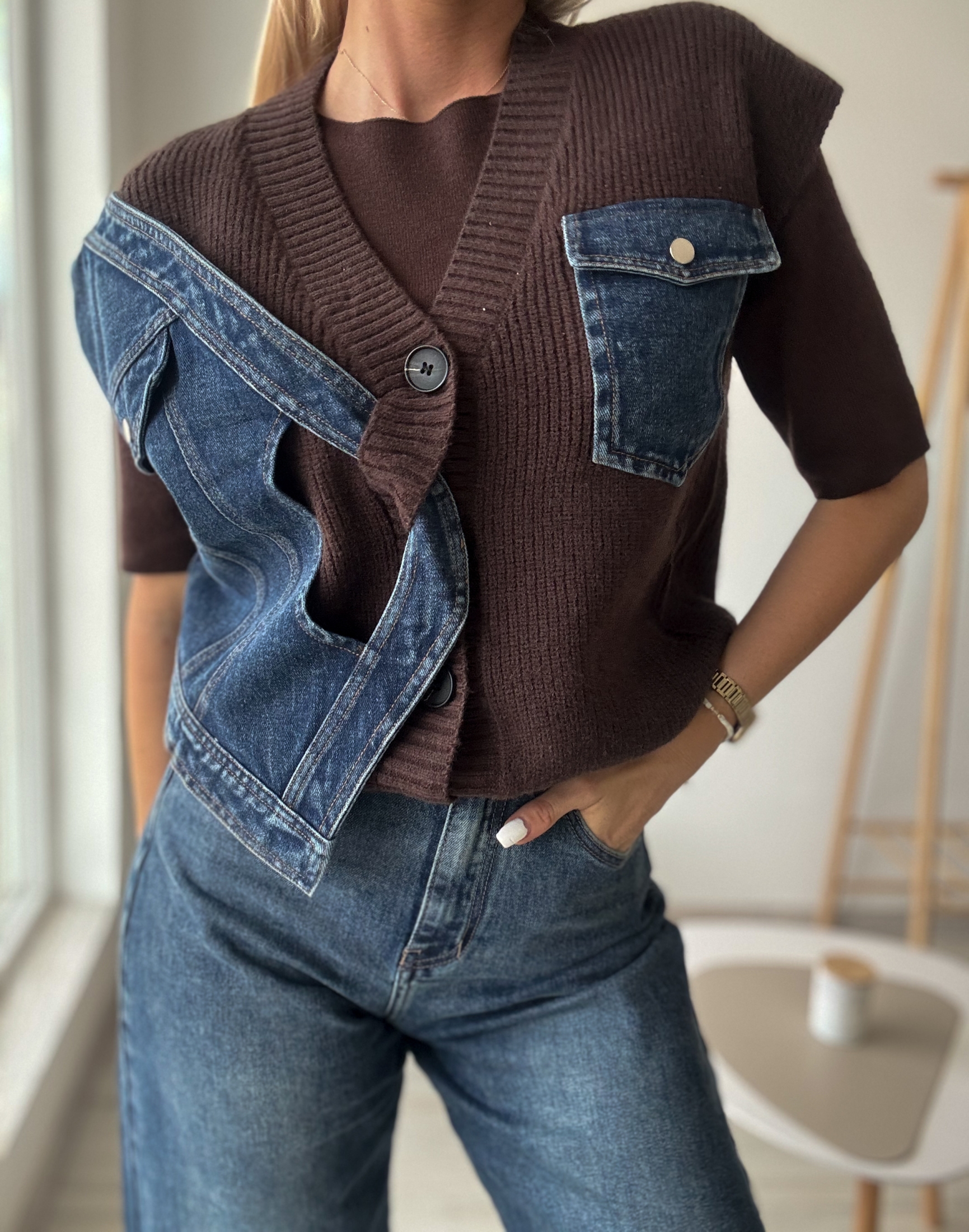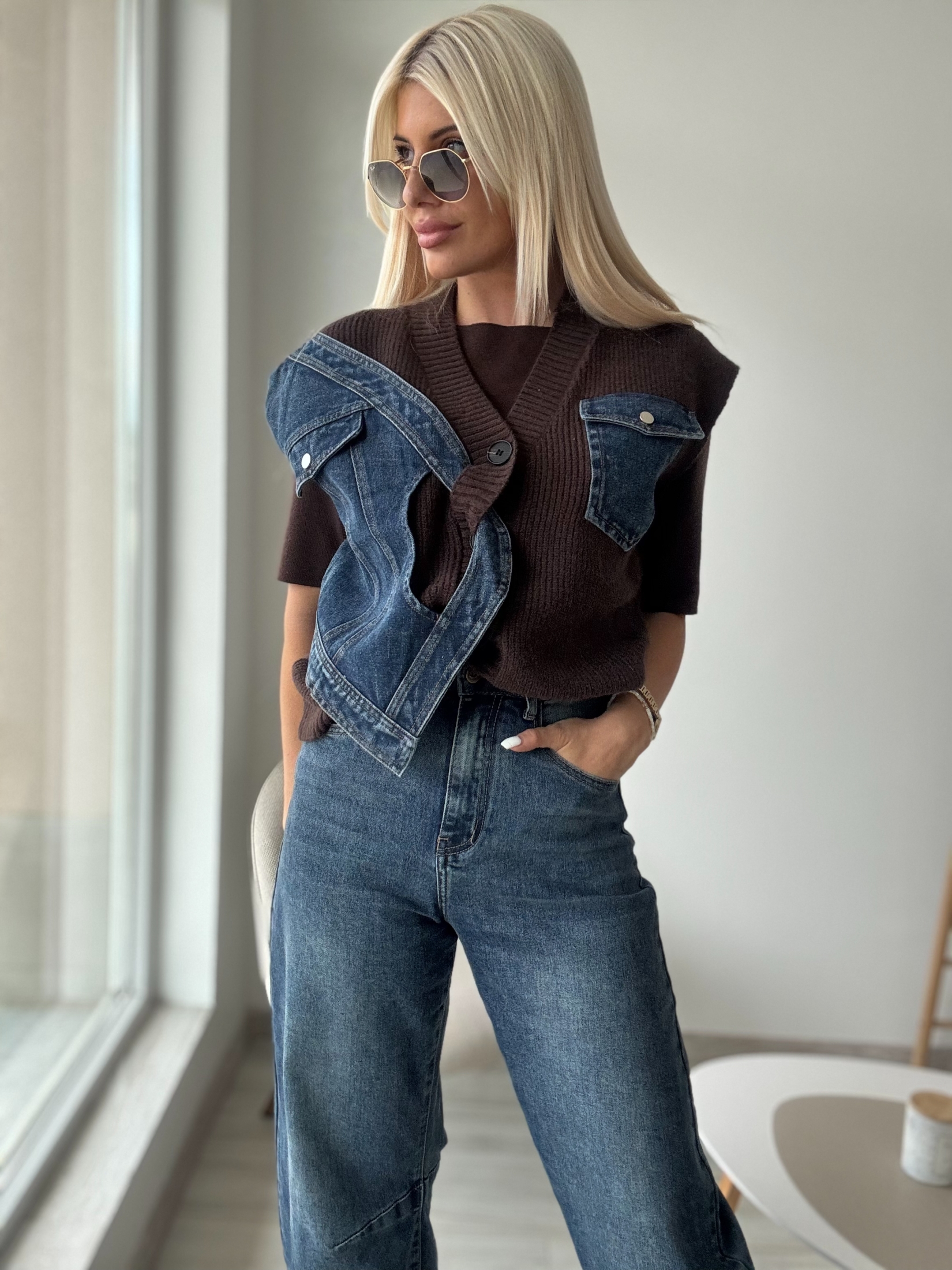 Кафяв елек с деним – Съчетание на стил и комфорт!