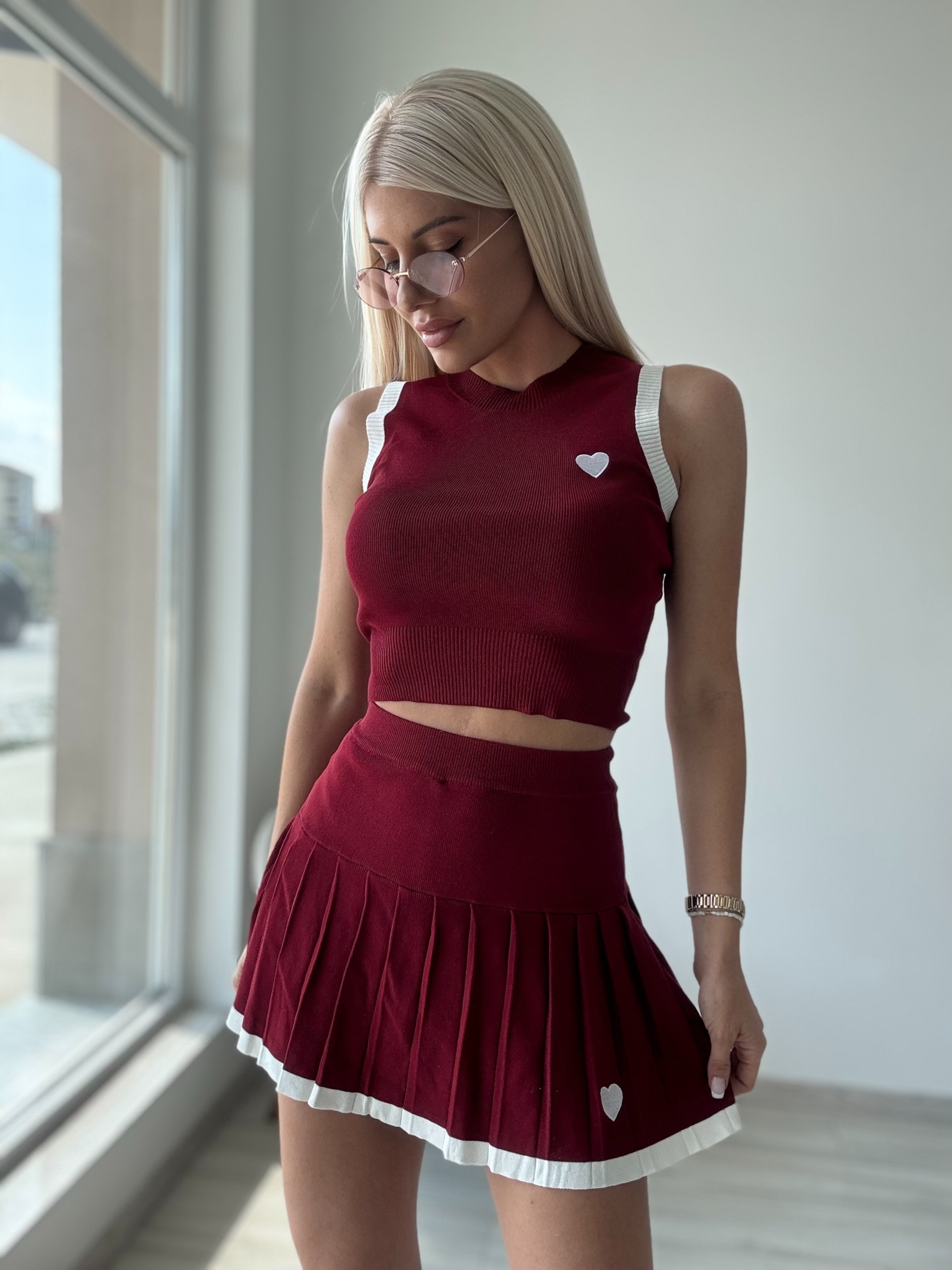 Открийте съвършената комбинация от стил и изящество с нашия комплект "Сърце Боргунди". Този уникален комплект е създаден да добави нотка на елегантност и топлина към вашата визия, независимо дали сте на работа, на специално събитие или просто се наслаждавате на деня.
