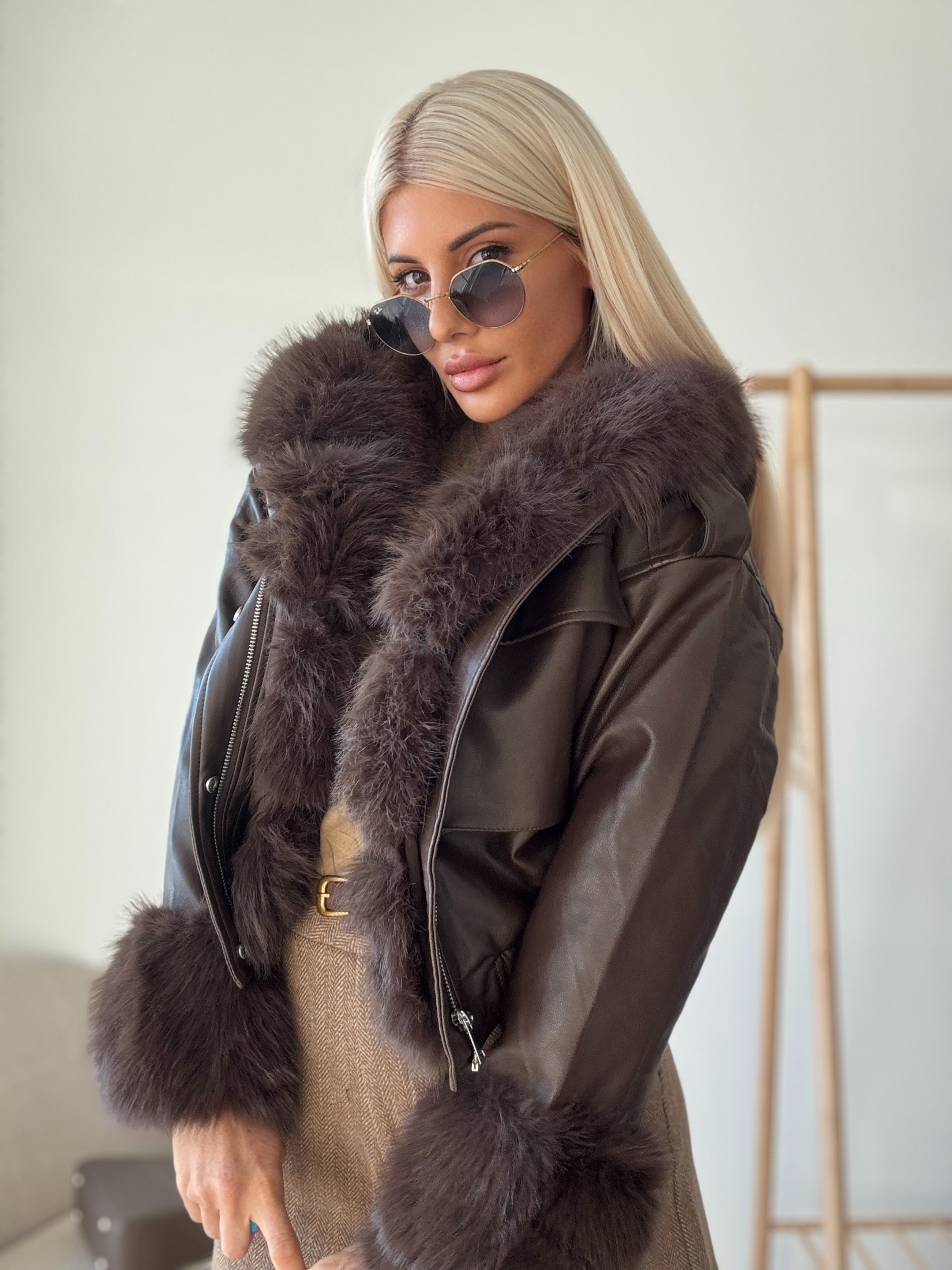 Дизайнът на якето е модерен и универсален, което го прави подходящо както за ежедневни, така и за по-специални поводи. Цветът кафе е топъл и изискан, лесно се комбинира с различни цветове и стилове облекло, добавяйки нотка елегантност към всяка визия. Якето разполага с удобни джобове, които са идеални за съхранение на лични вещи, и качествен цип за лесно закопчаване.