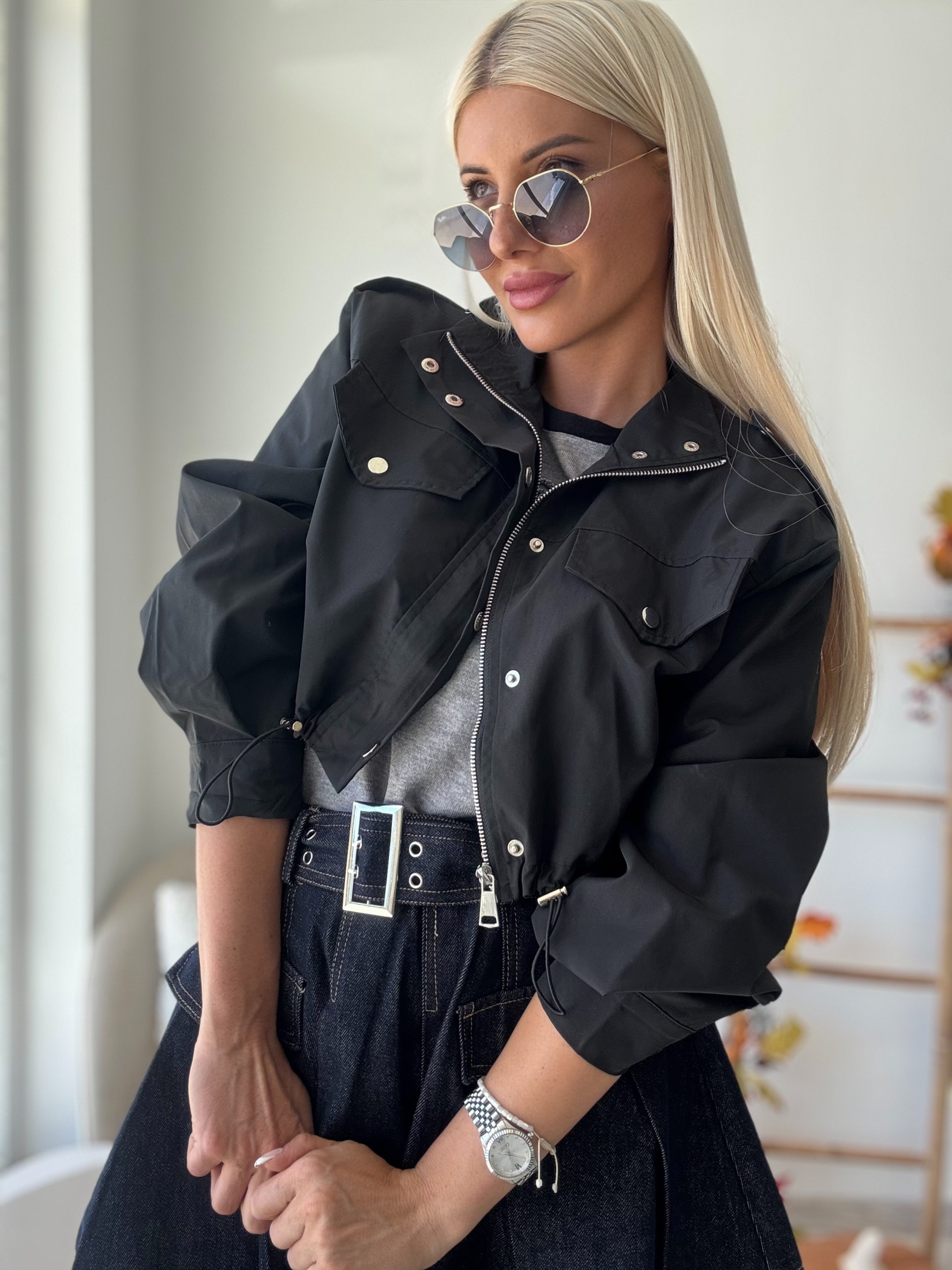 Нашето черно шушляково късо яке е не само стилно, но и изключително практично. Ето защо е перфектната добавка към вашия гардероб: