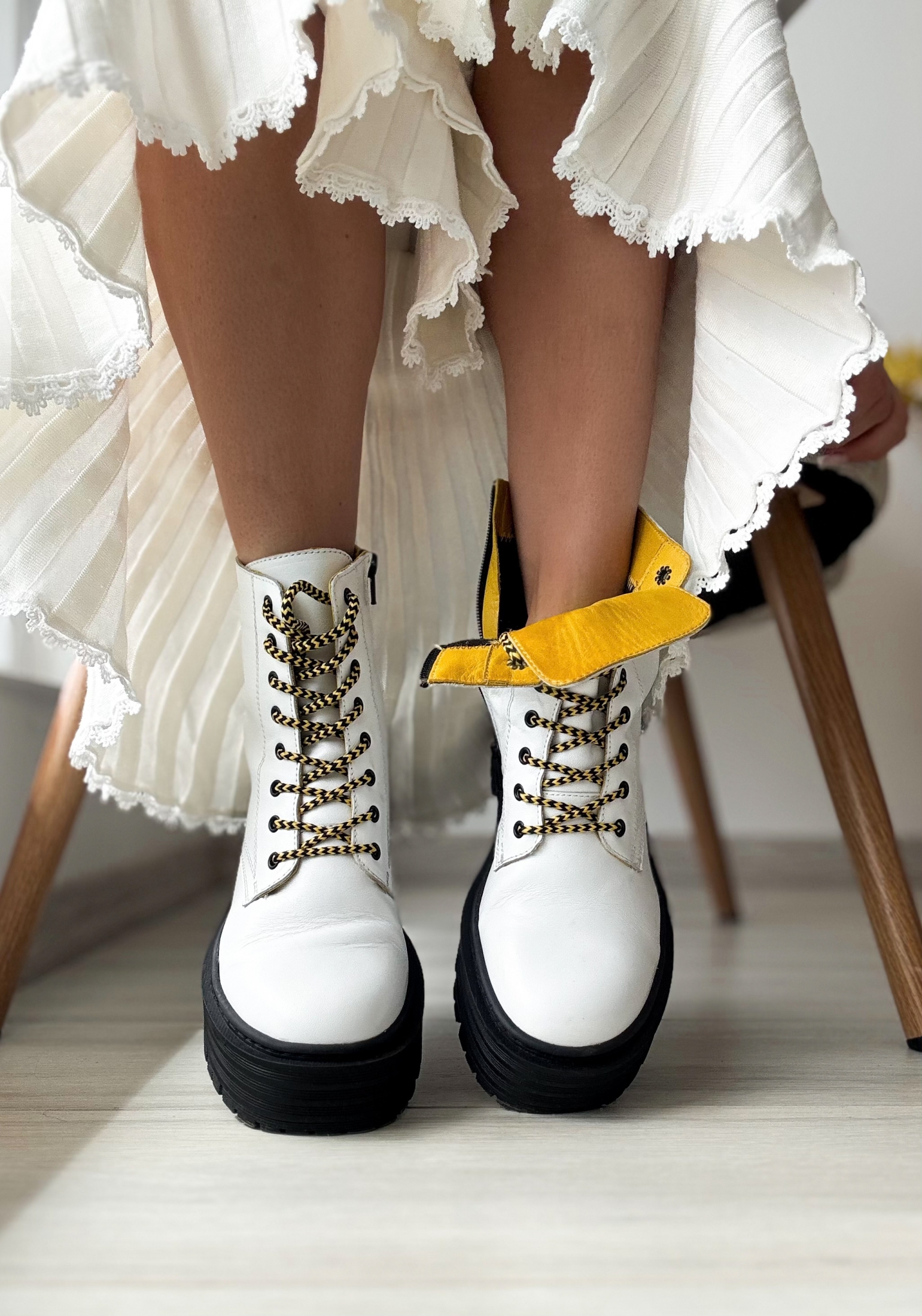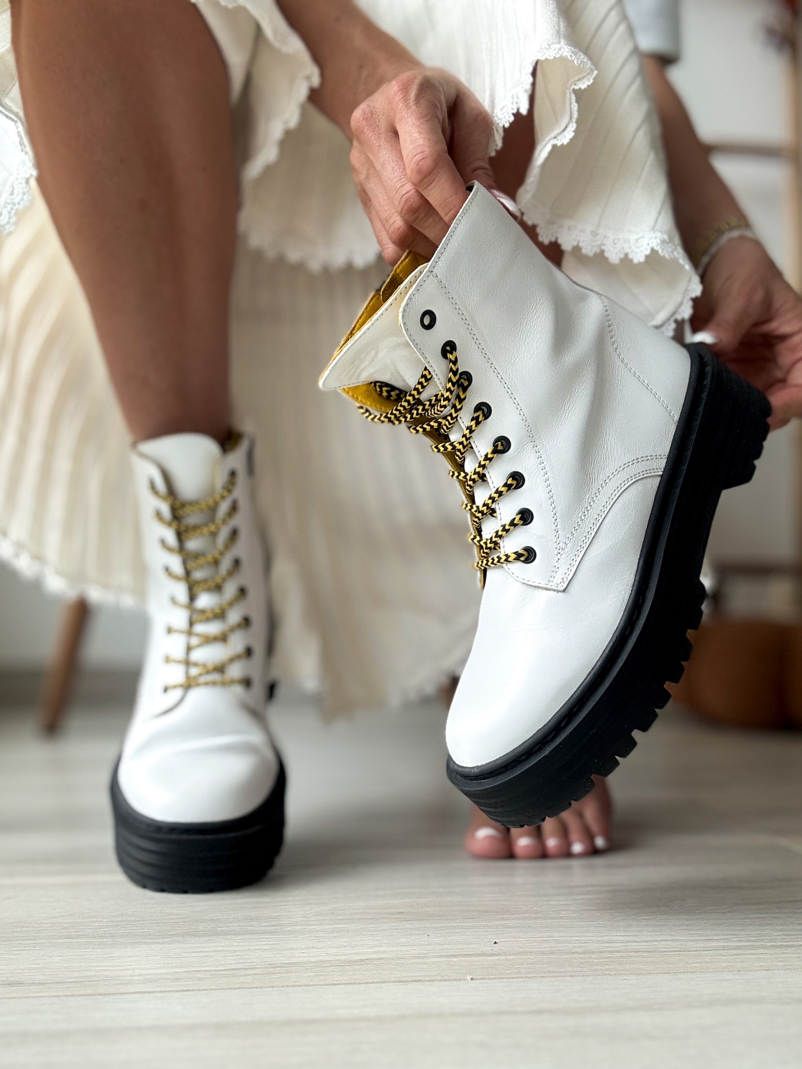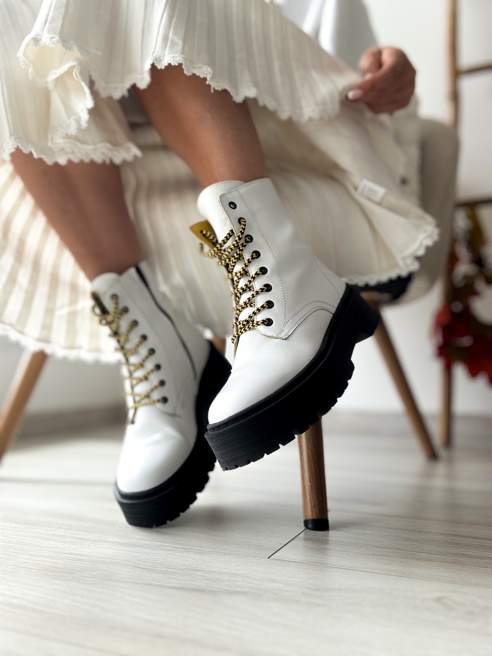 Защо да изберете нашите бели кожени боти? * Висококачествена естествена кожа за издръжливост и комфорт * Елегантен бял цвят, който се комбинира лесно с различни стилове * Удобна подметка за стабилност и сцепление * Универсален дизайн, подходящ за всякакви поводи * Издръжливост - ще се наслаждавате на тези боти дълго време Не пропускайте възможността да добавите тези стилни и удобни бели кожени боти към вашата колекция! Поръчайте сега и се насладете на комфорта и елегантността, които те предлагат.