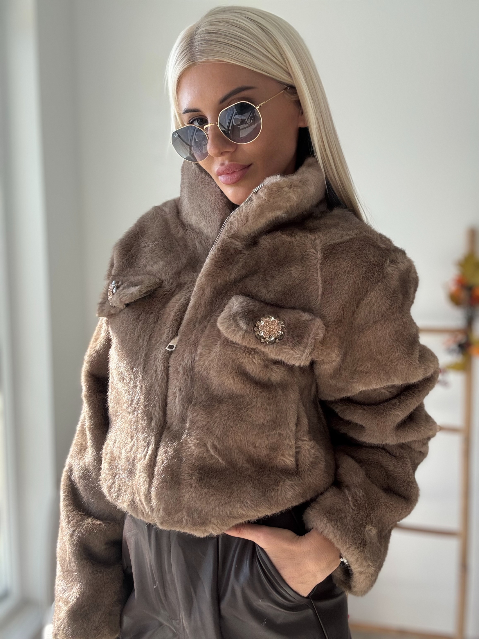 Защо да изберете нашето кафяво пухкаво палто с камъни?