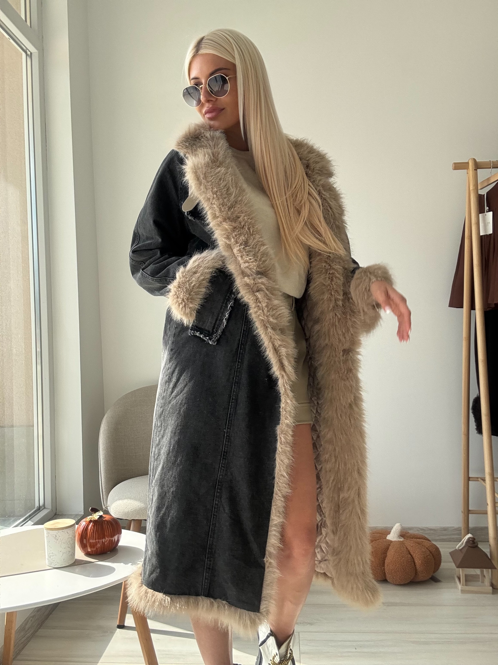 Това яке не е просто дреха, а инвестиция във вашия стил. Черният деним е вечен и винаги актуален, което означава, че ще можете да носите това яке години наред. Дългата кройка придава елегантен и изтънчен вид, като същевременно осигурява допълнителна топлина през по-хладните дни.