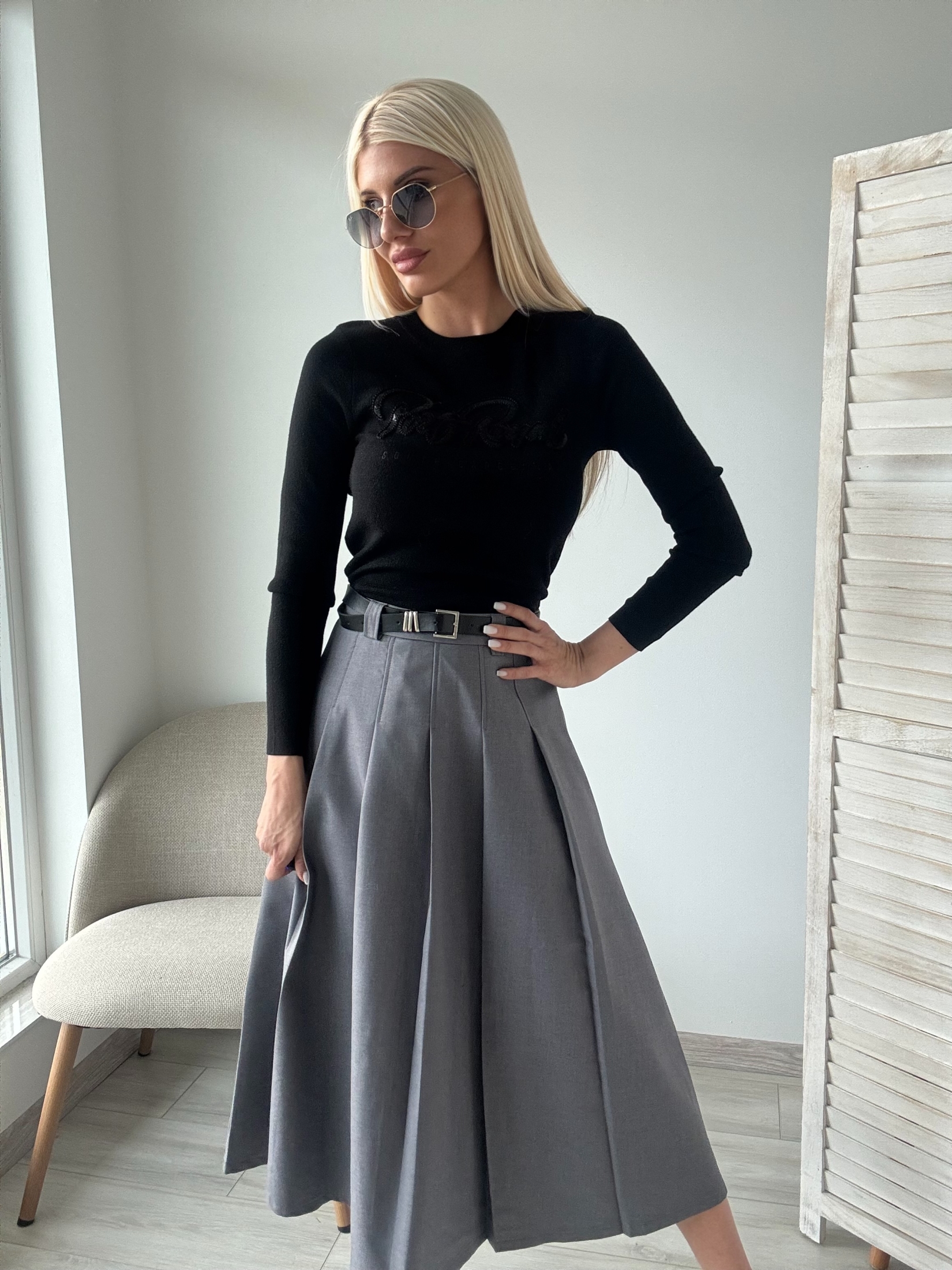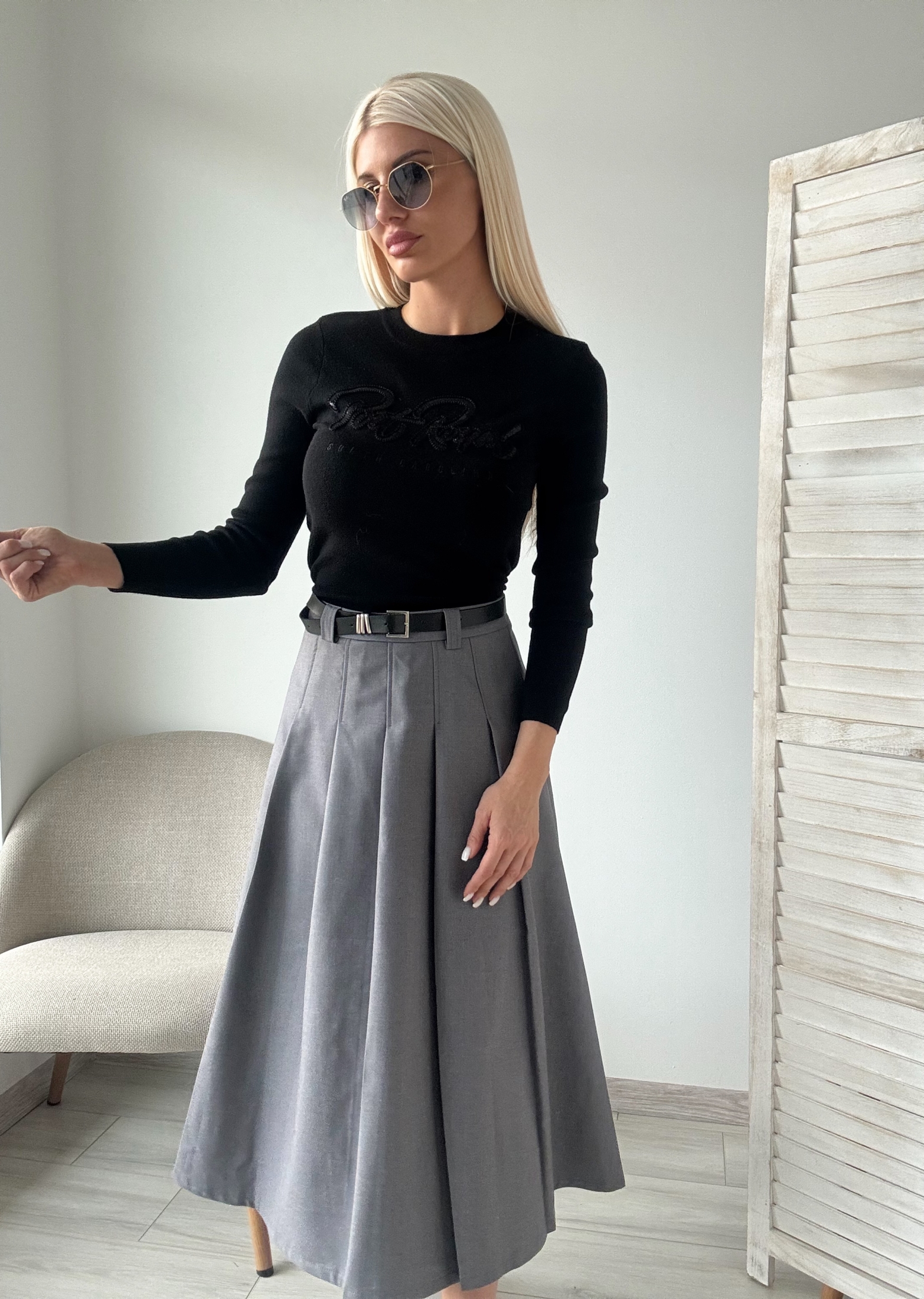 Елегантна сива дълга пола, идеална за всеки повод. Подчертайте талията си със стилния колан.