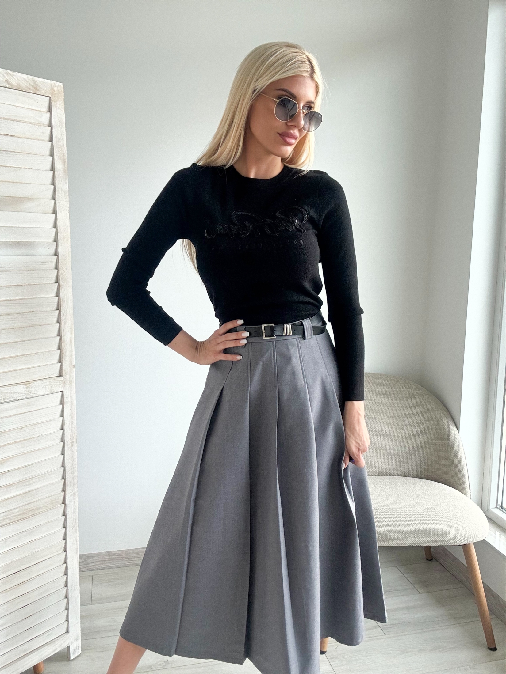 Елегантна и стилна, тази дълга сива пола е идеалното допълнение към вашия гардероб. Изработена от висококачествени материали, тя предлага комфорт и изискан вид, подходящ за всякакъв повод.