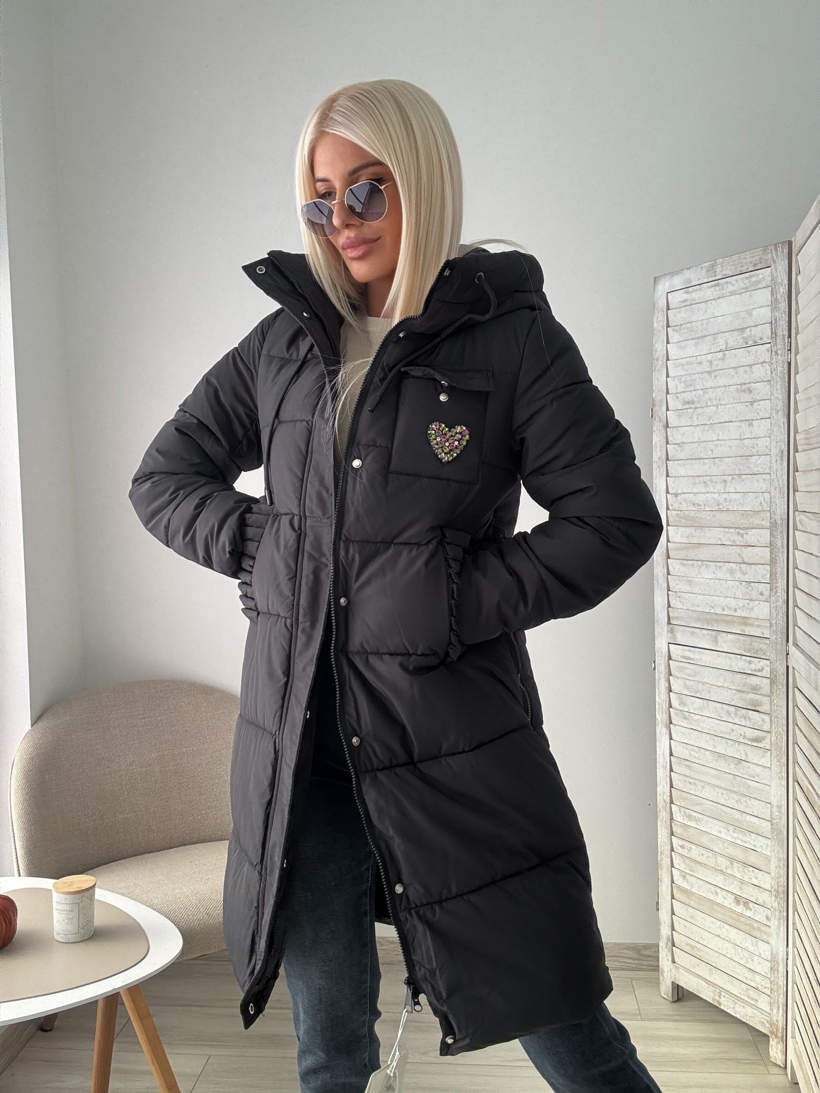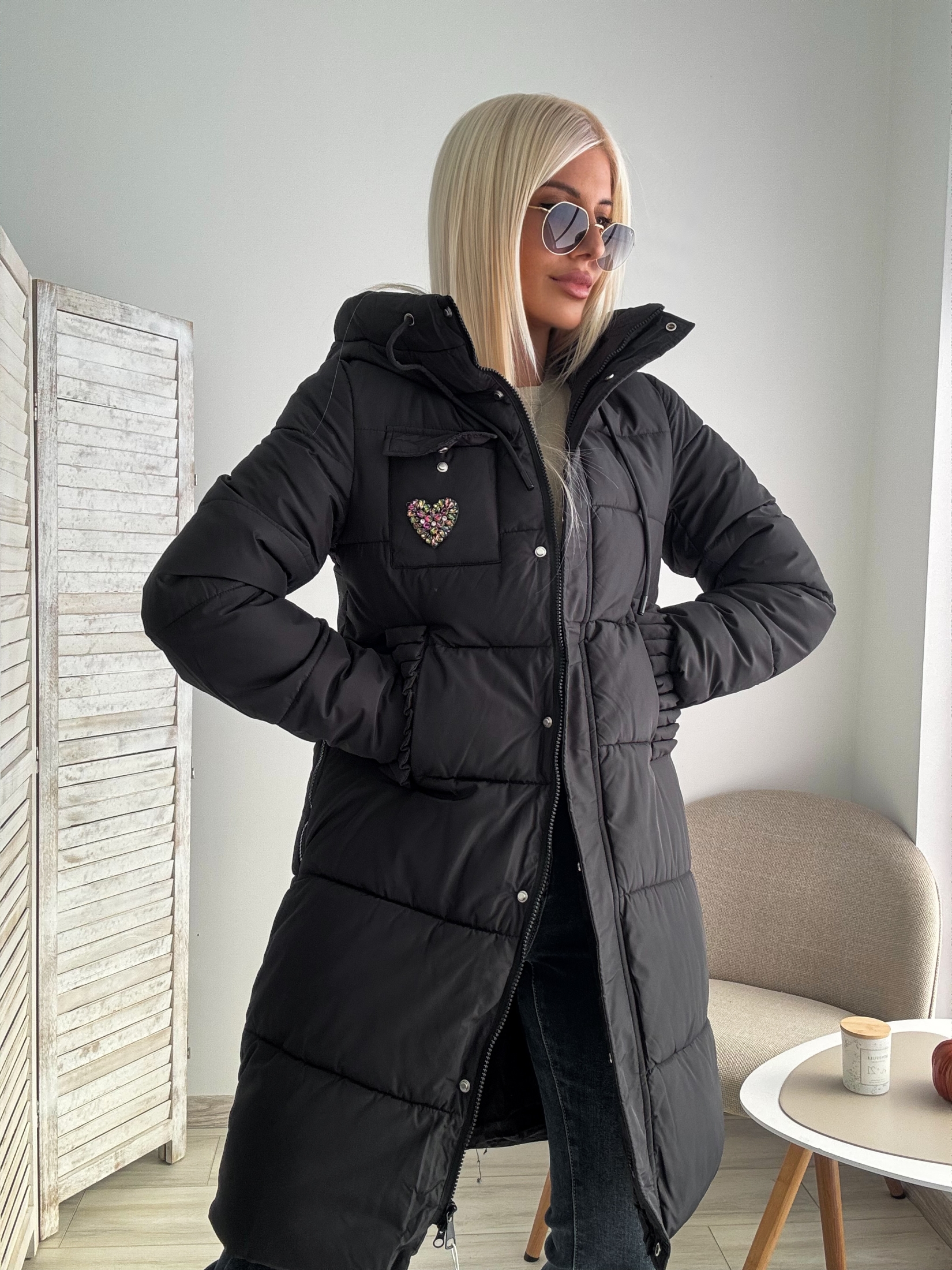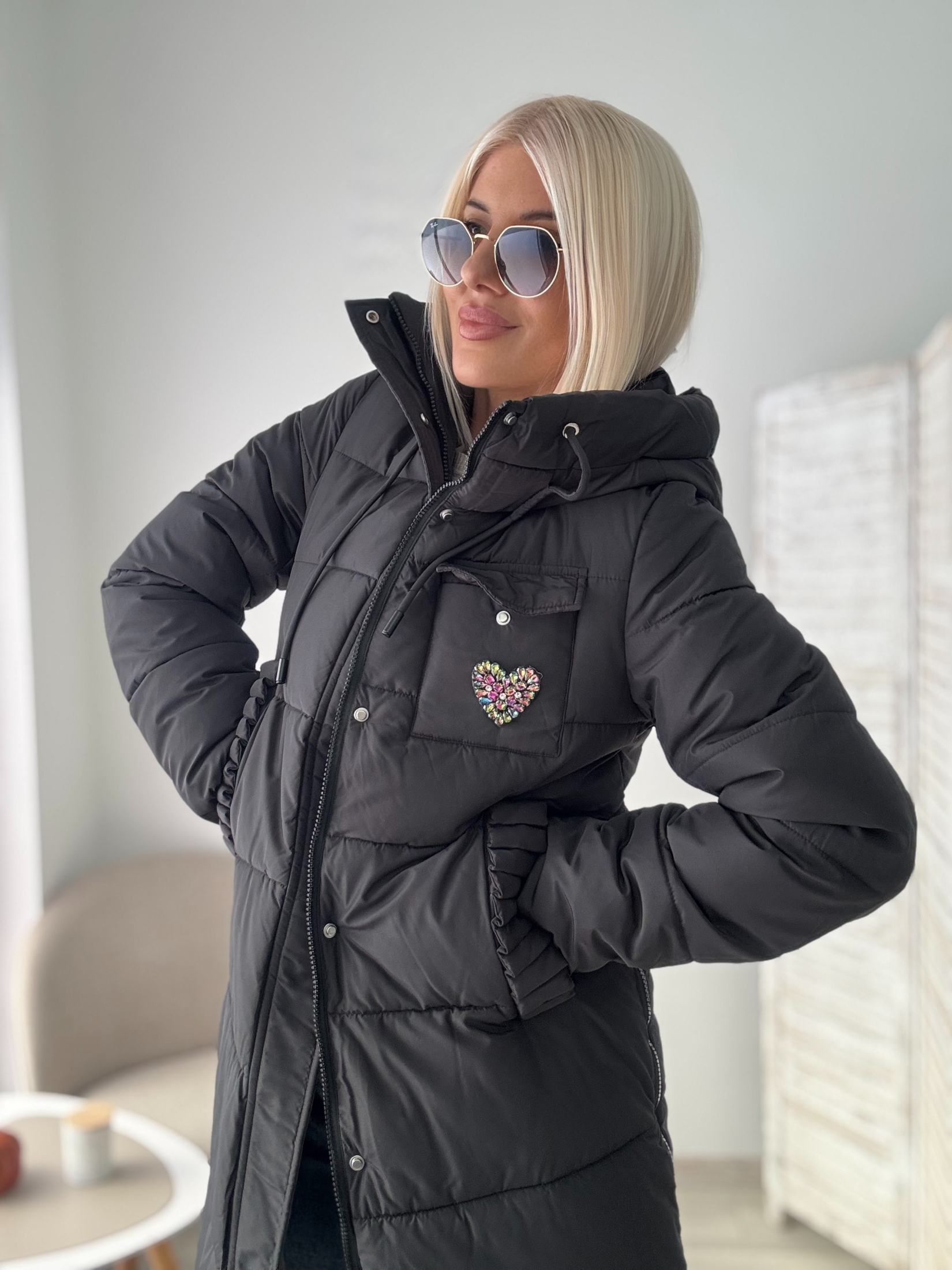 Облечете се със стил с нашето черно яке с камъни сърце!