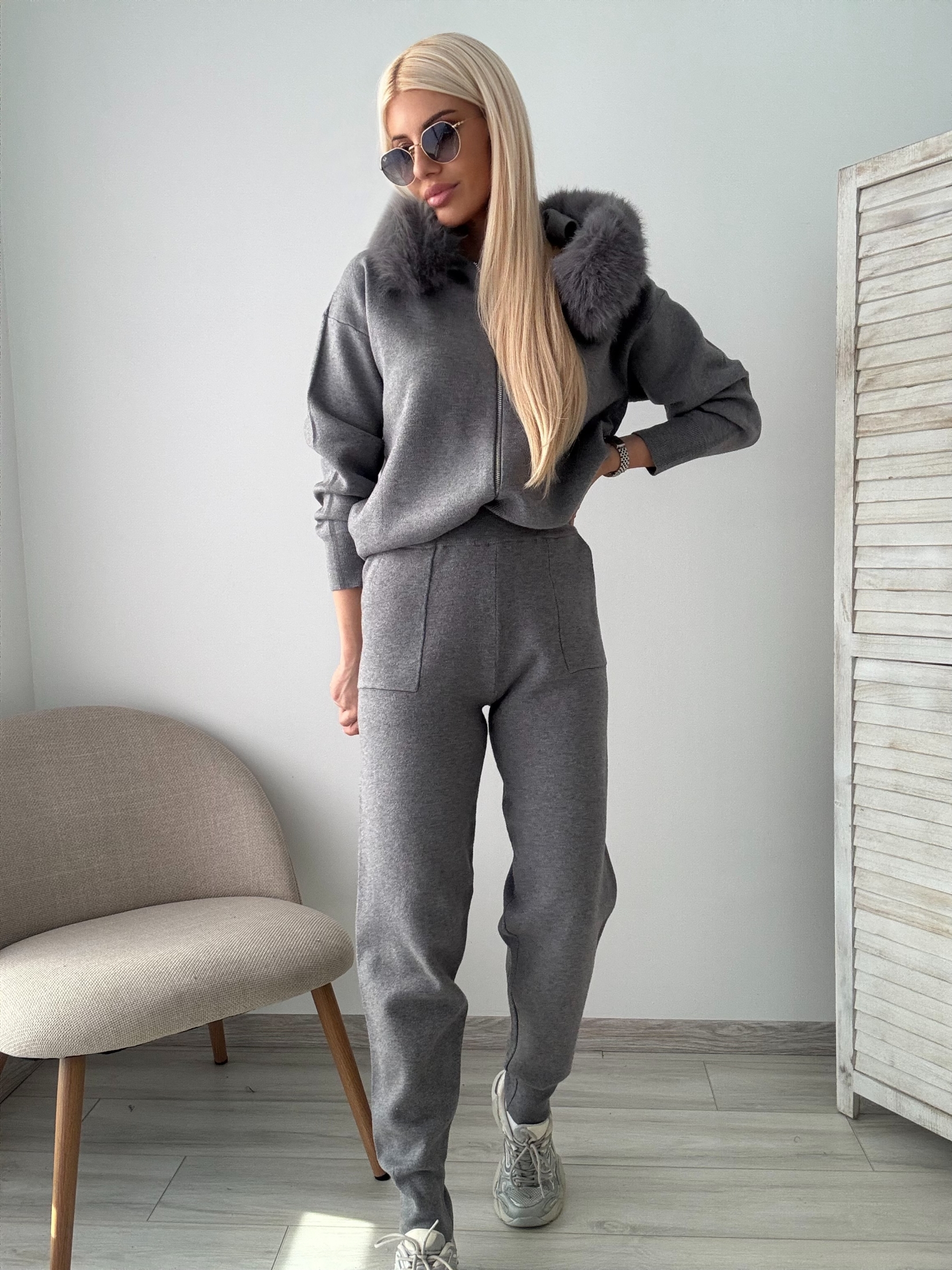 Уют и Стил в Едно: Сив Комплект с Пухкава Качулка