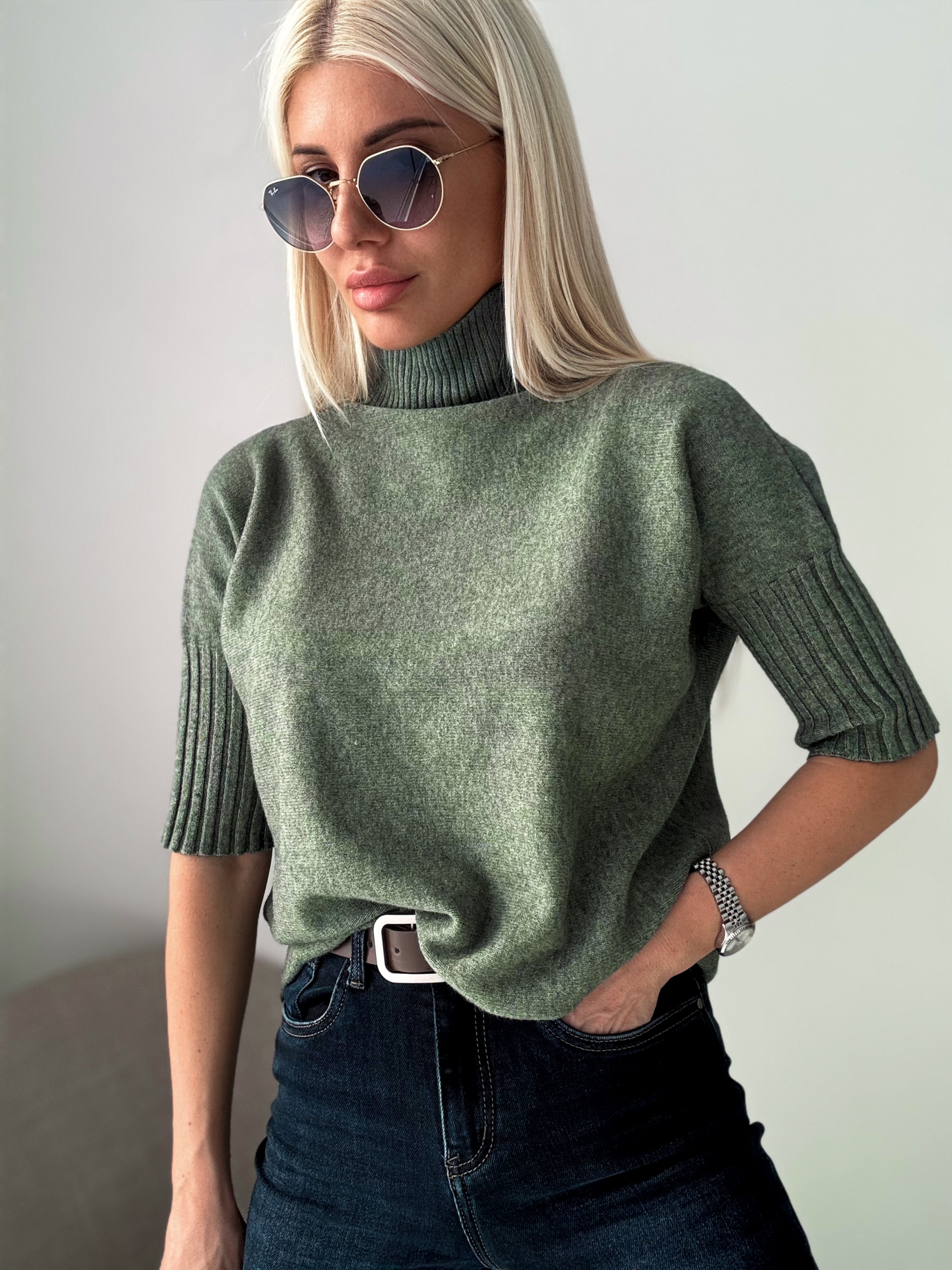 Представяме ви зеления пуловер Lina – перфектното допълнение към вашия гардероб, което съчетава комфорт, стил и топлина. Независимо дали се отправяте към офиса, на среща с приятели или просто се наслаждавате на уикенда у дома, този пуловер ще ви осигури елегантен и уютен вид.