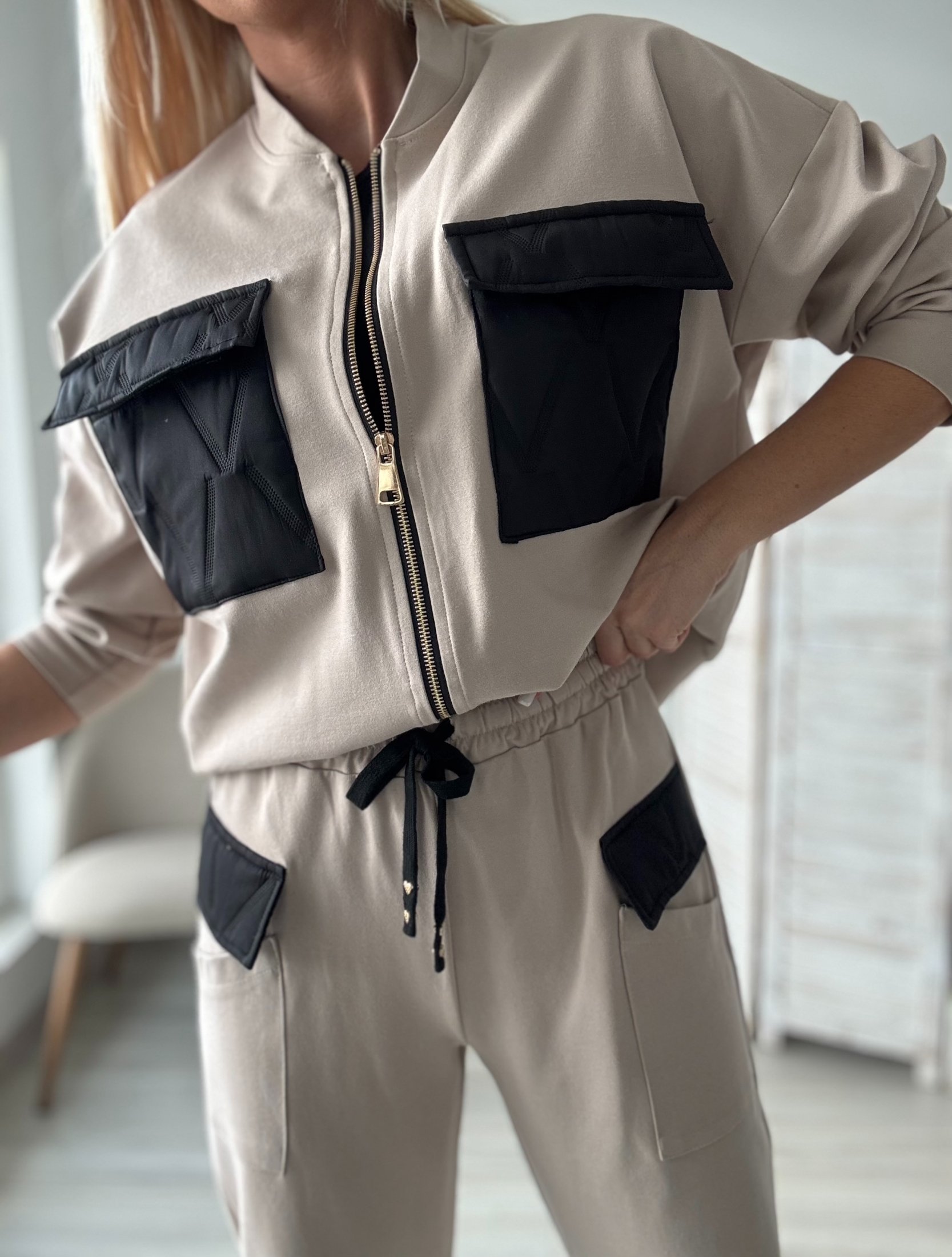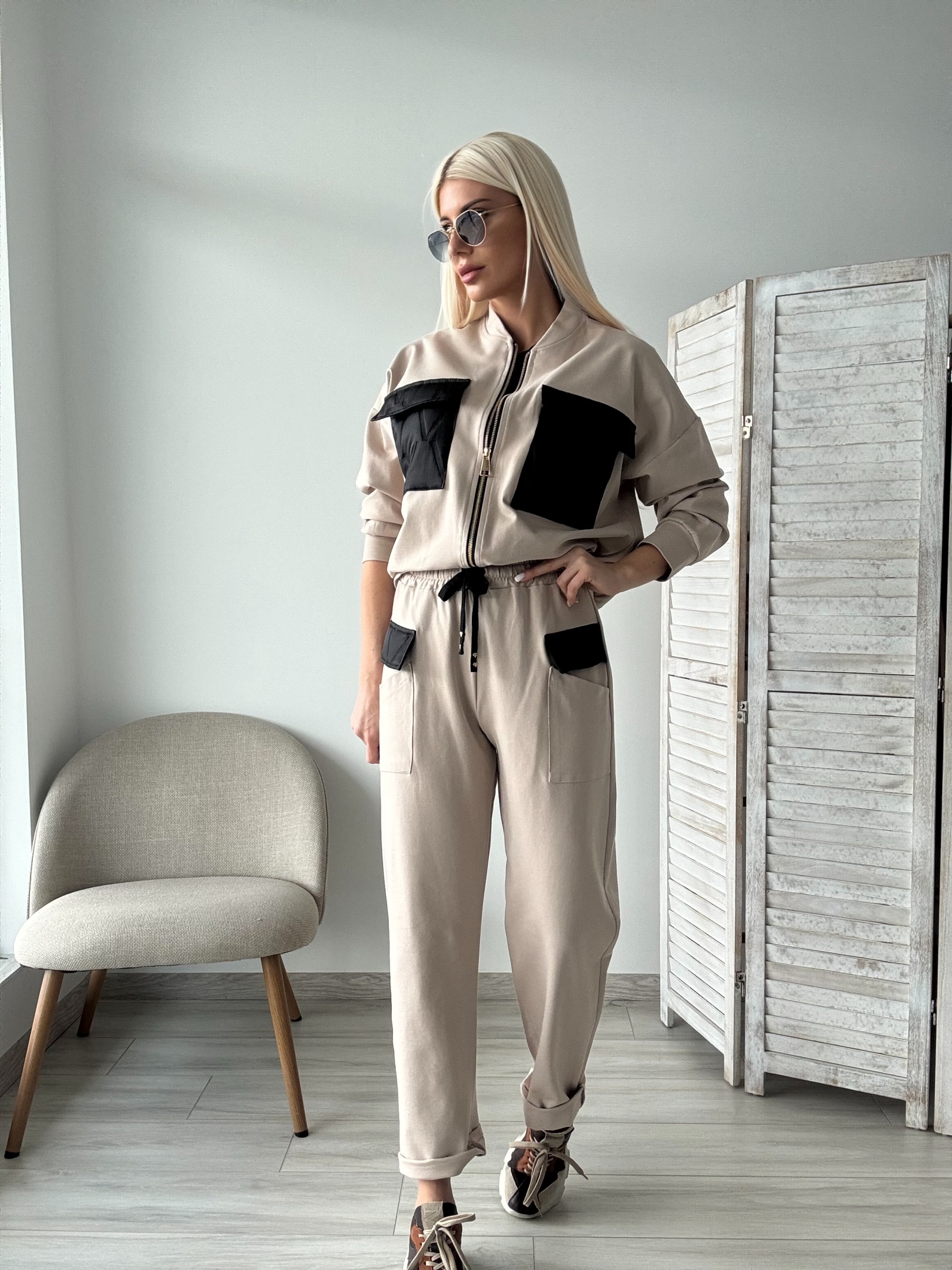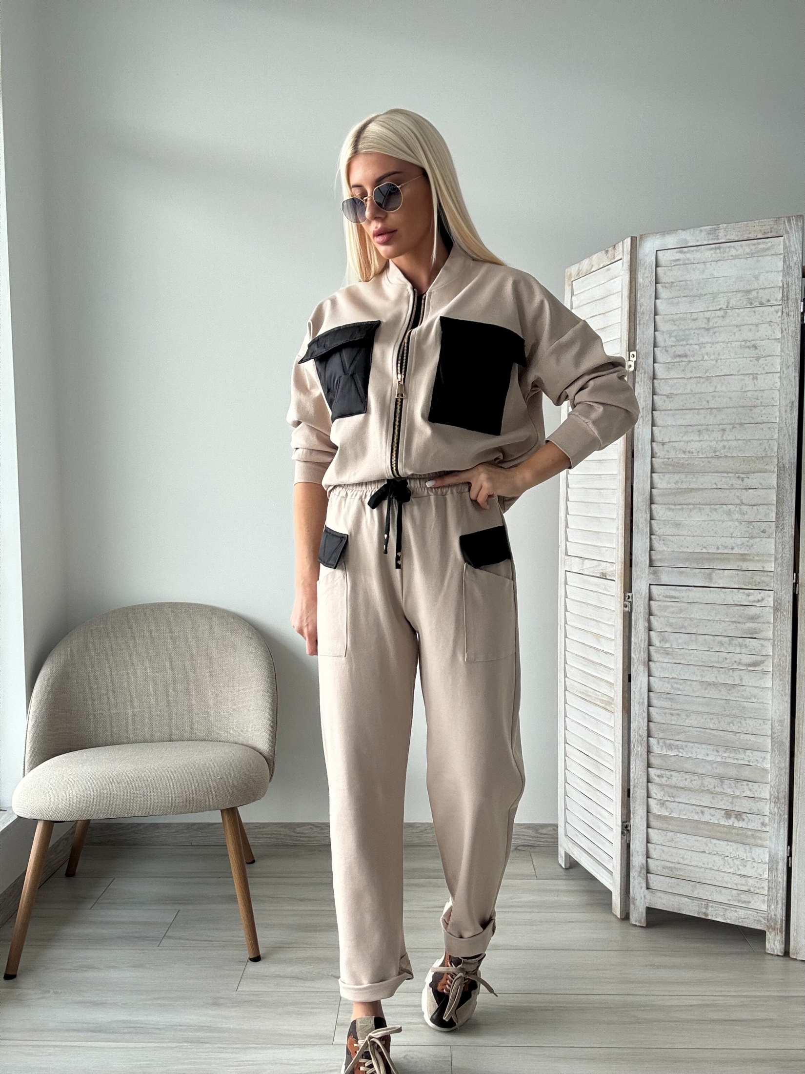 Поръчайте своя бежов спортен памучен комплект с джобове днес и се насладете на перфектната комбинация от комфорт, стил и практичност!