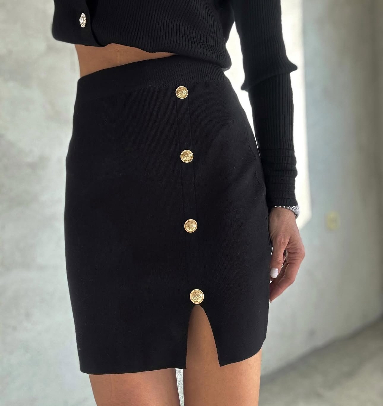 Черна пола със златни копчета