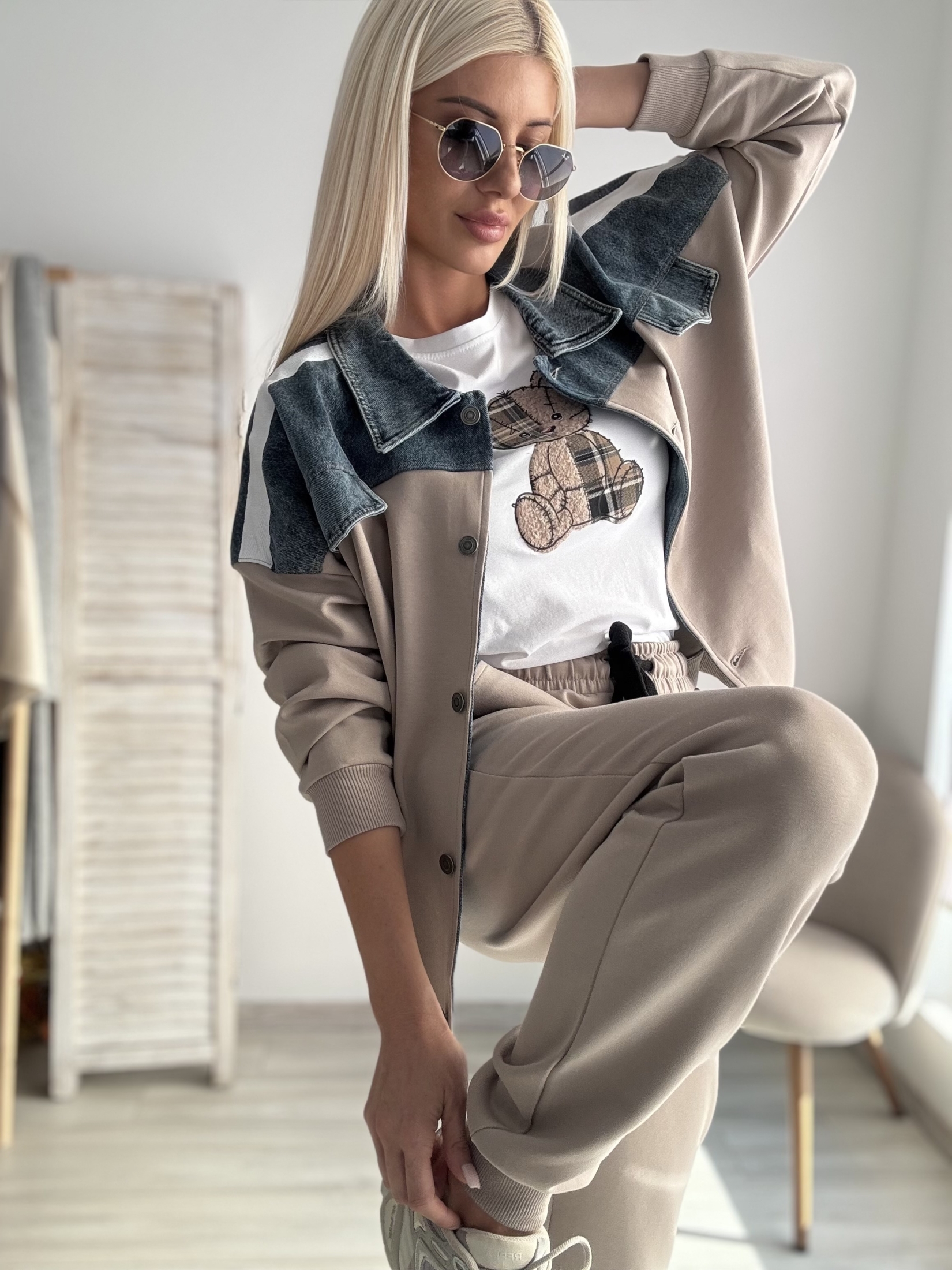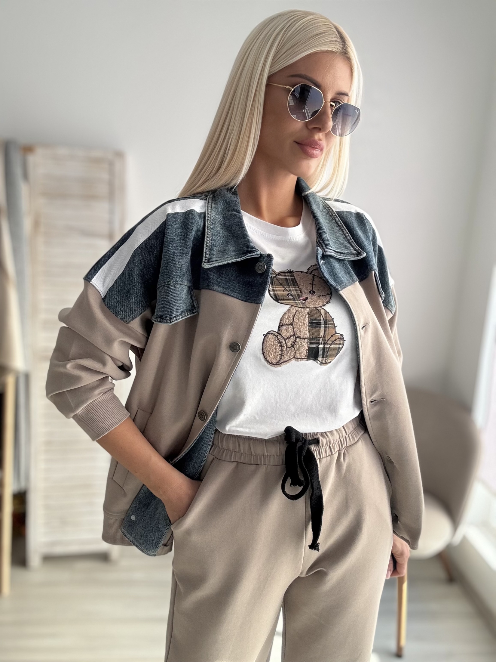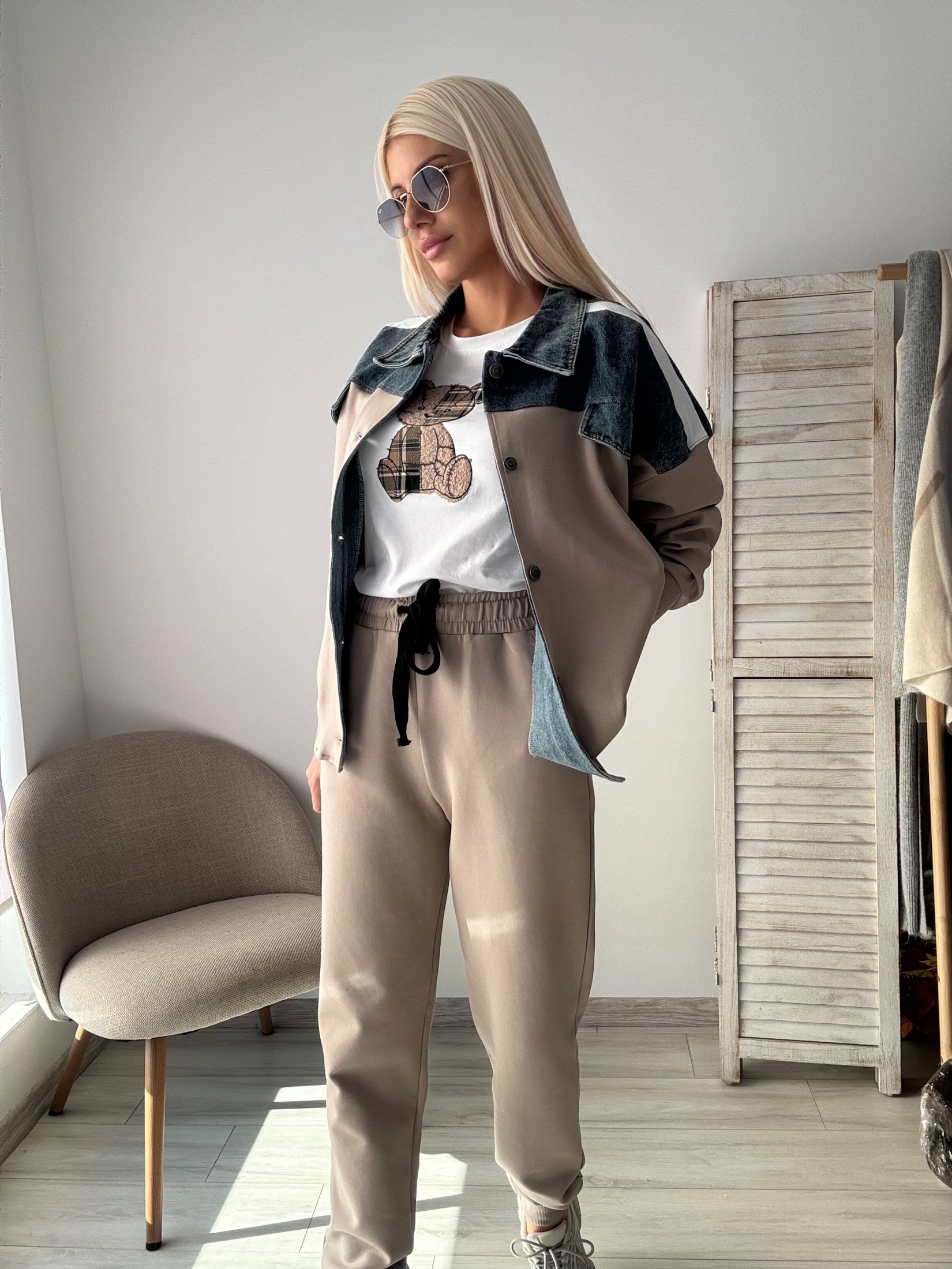 Комплект в бежово с деним яке