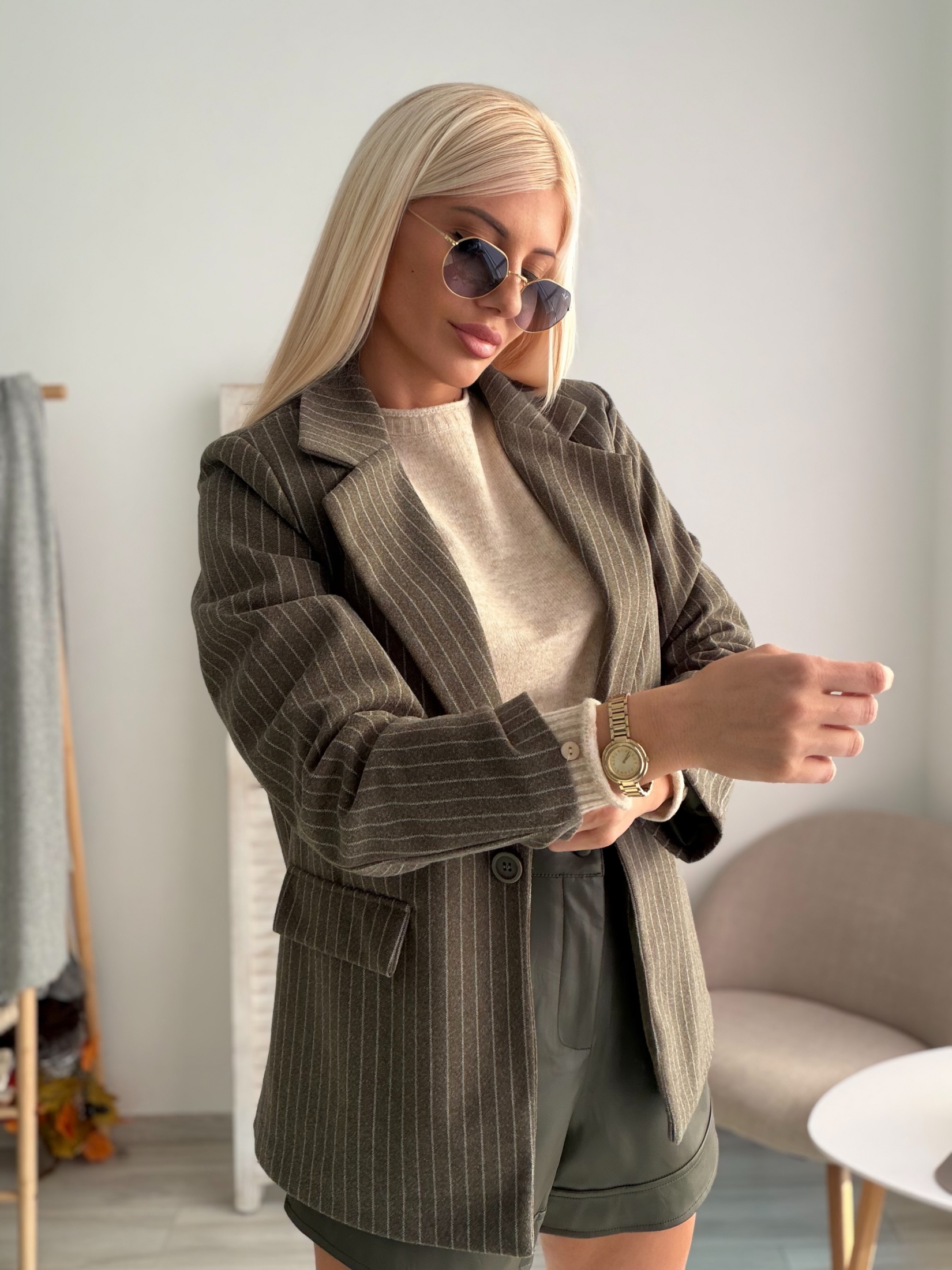 - Елегантен зелен цвят с райе: Лесно се комбинира с различни стилове и цветове.