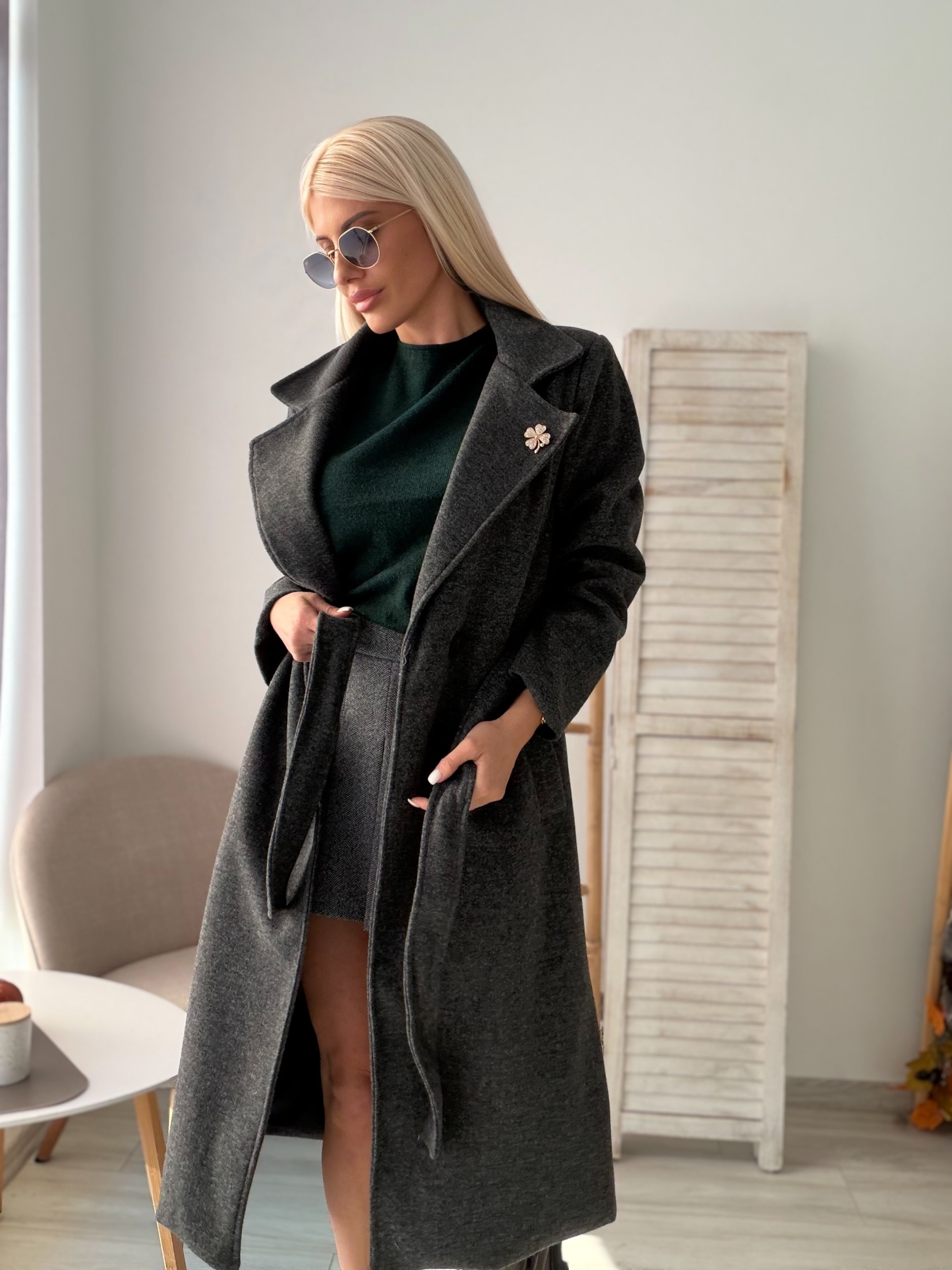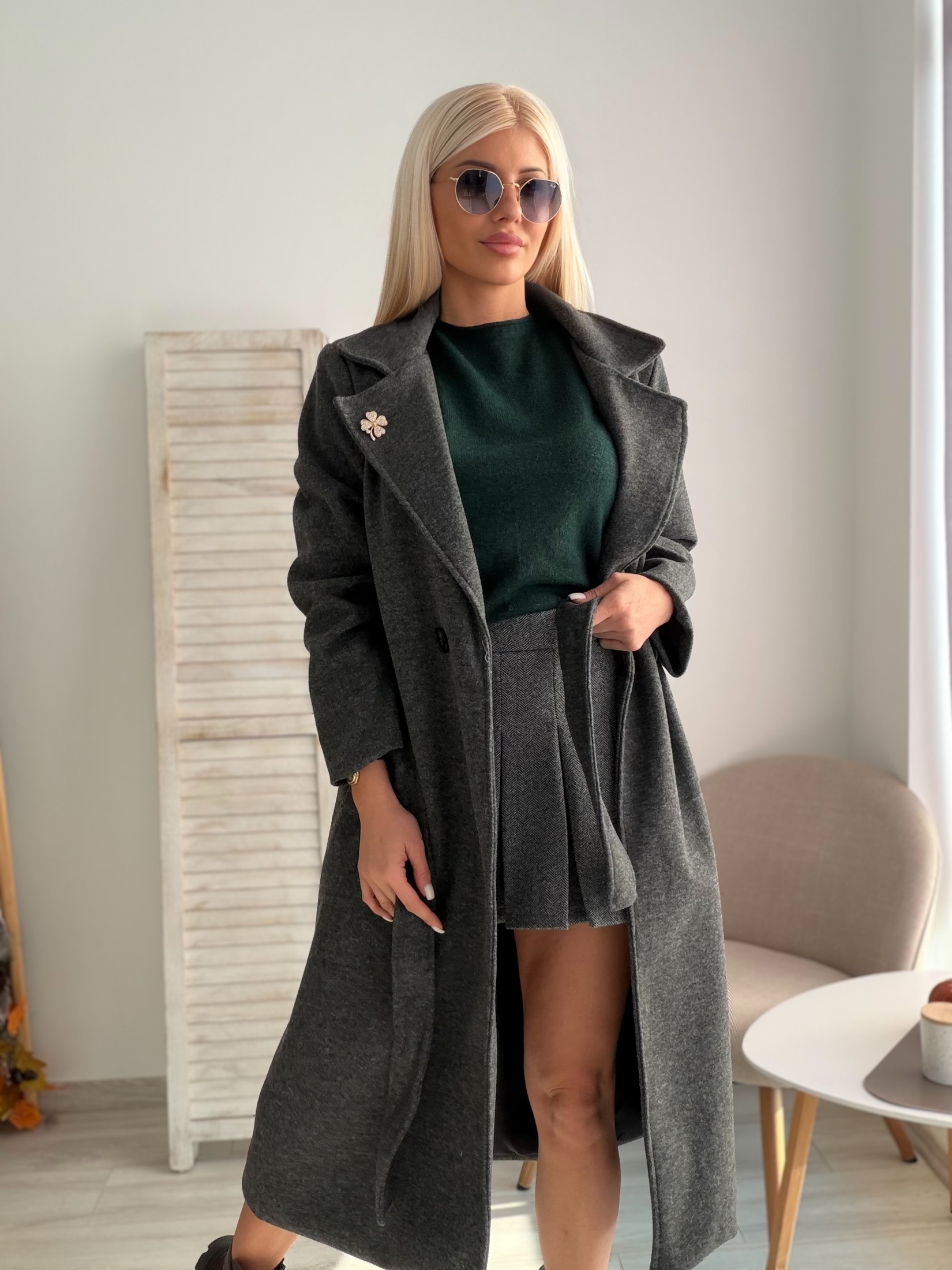Елегантно палто, идеално за допълване на вашия стил. Отличава се с уникална брошка, придаваща изисканост и индивидуалност.