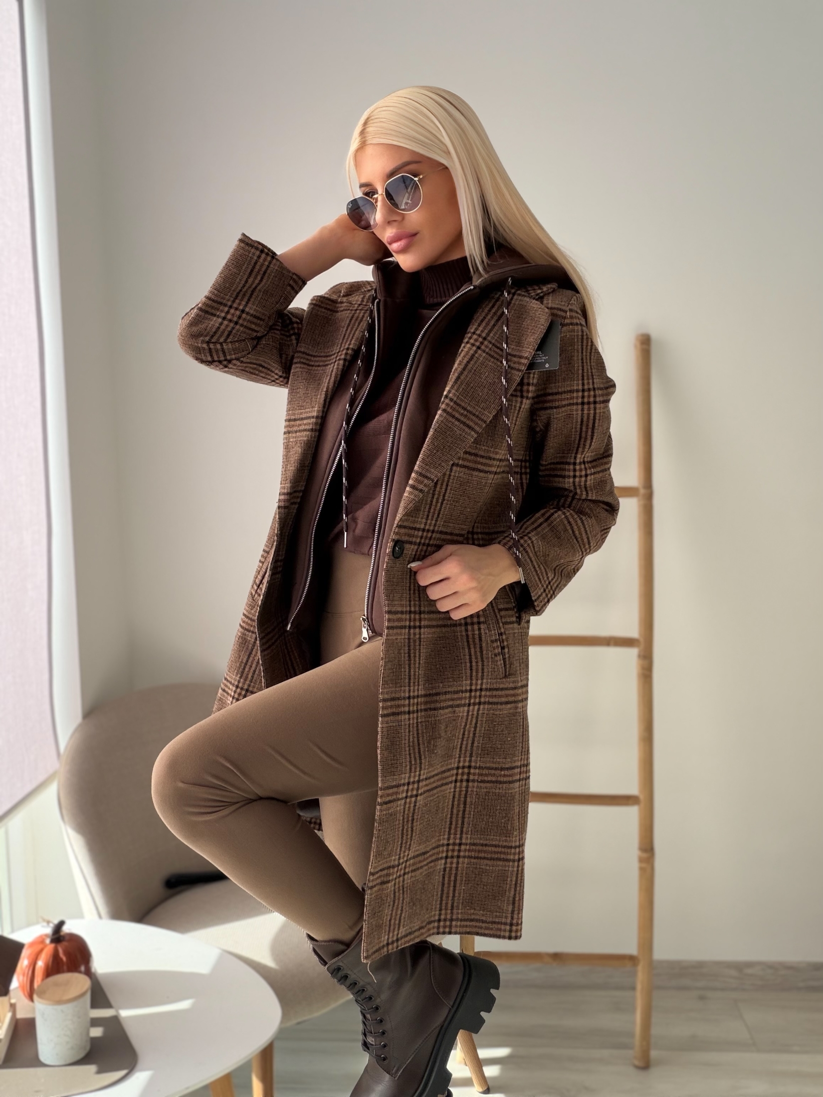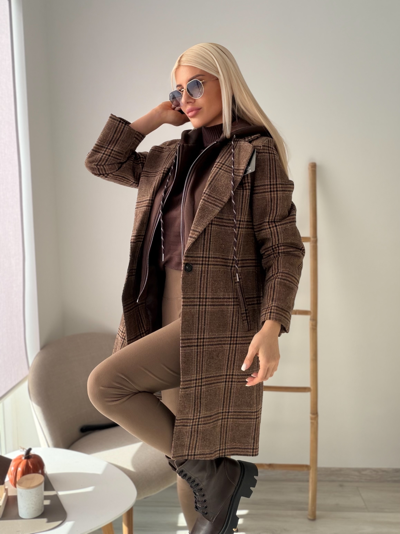Топло и стилно решение за студените дни! Нашето карирано палто е с вграден суитшърт за допълнителен комфорт и модерна визия.