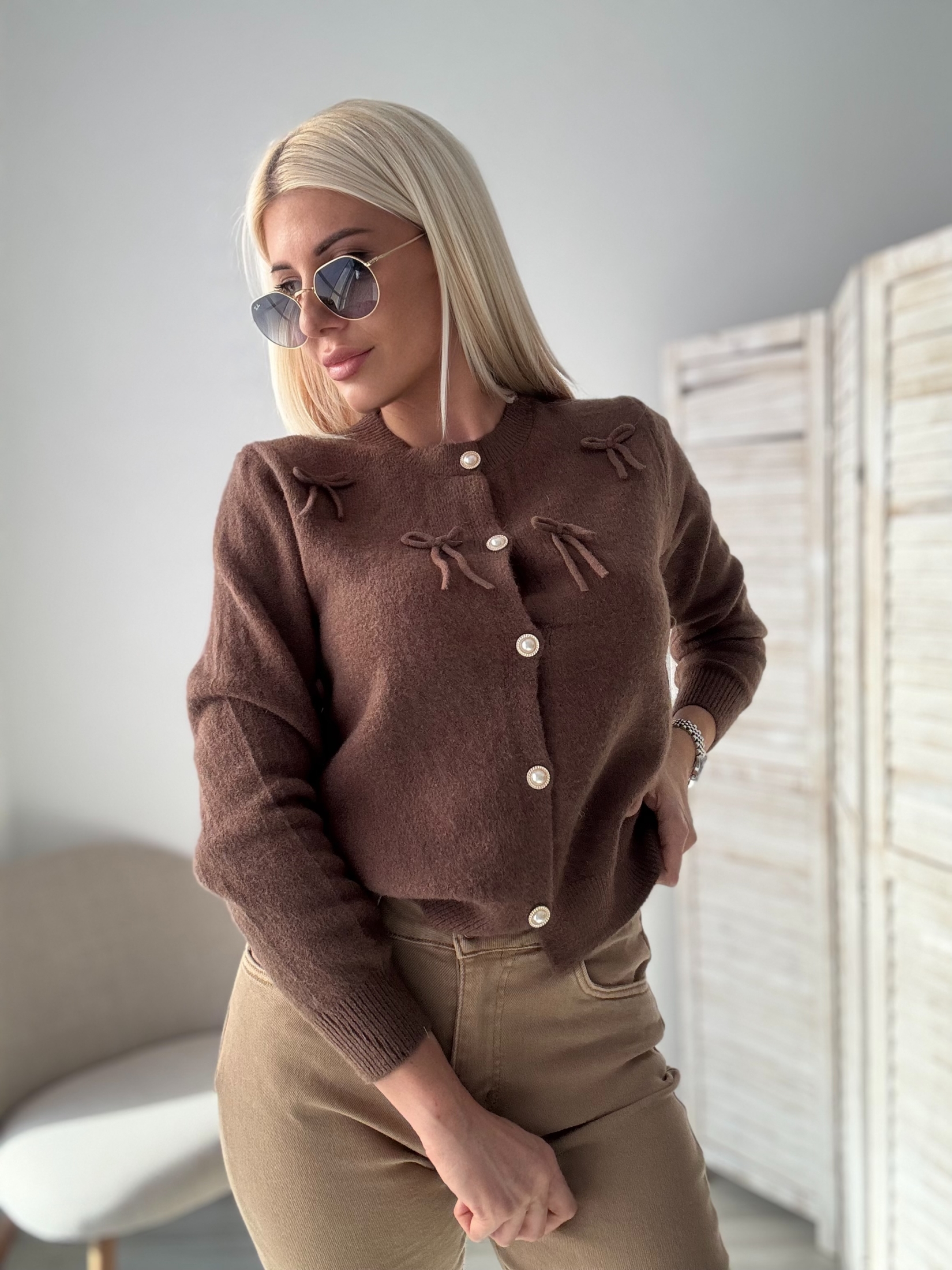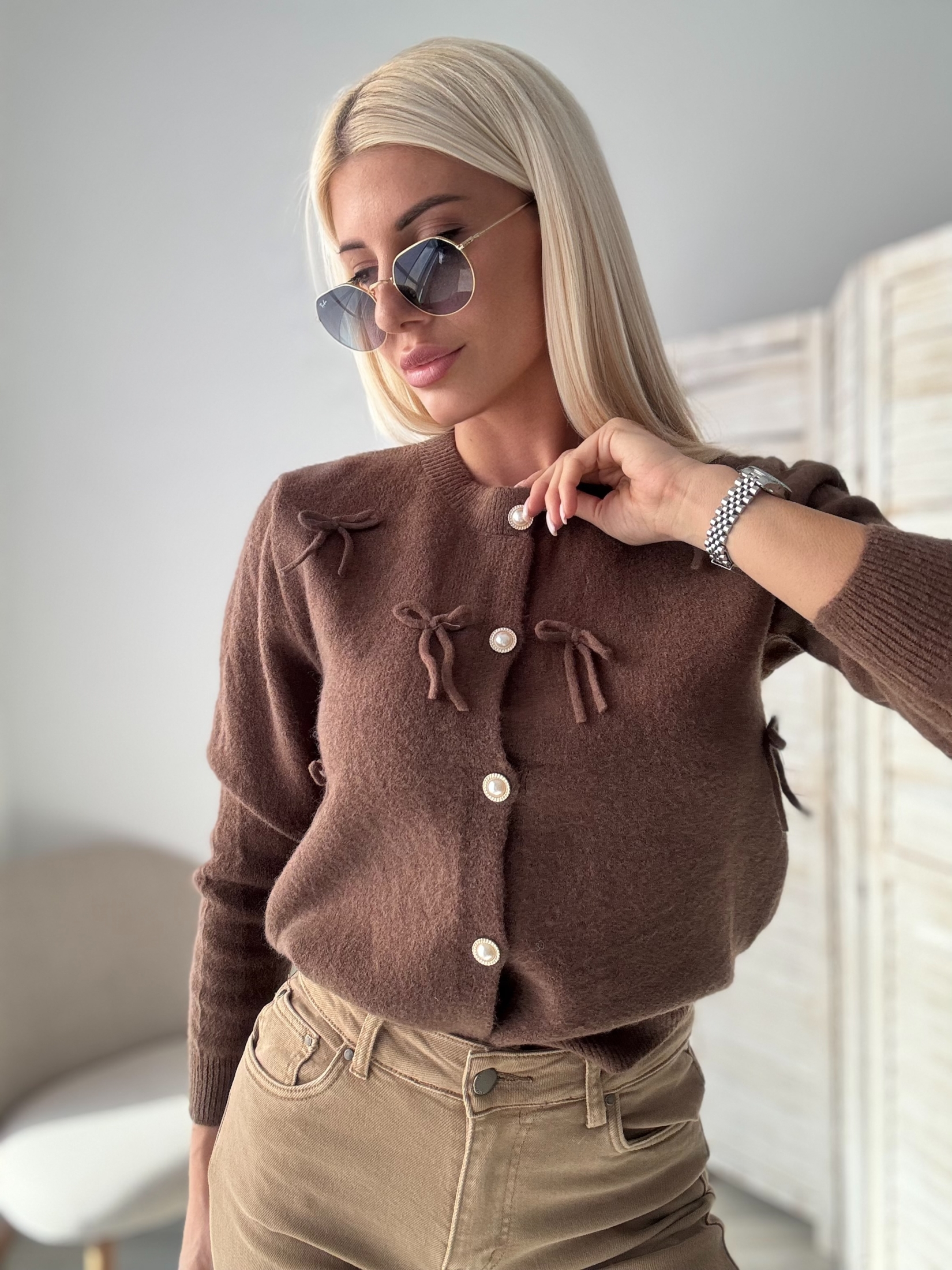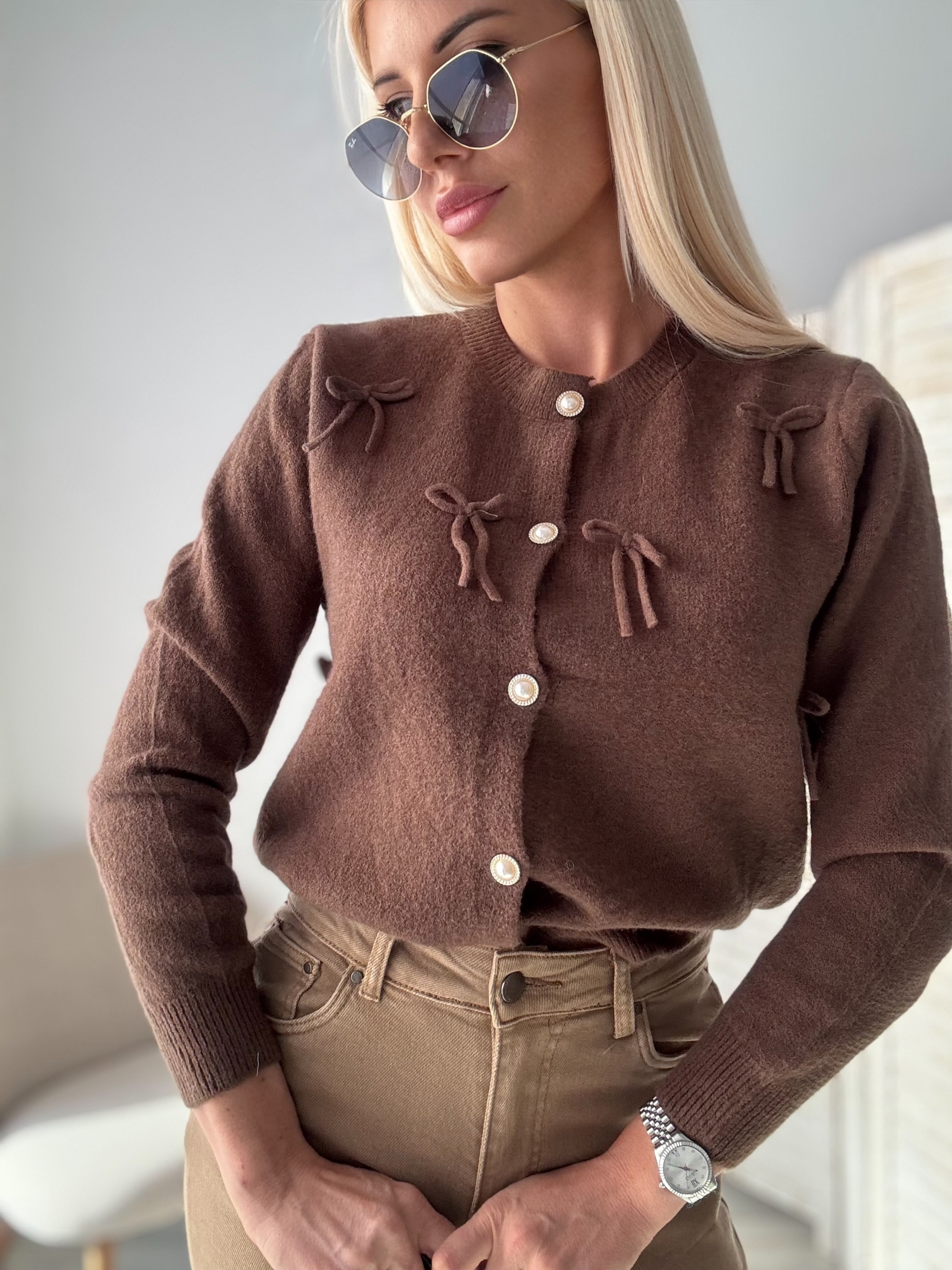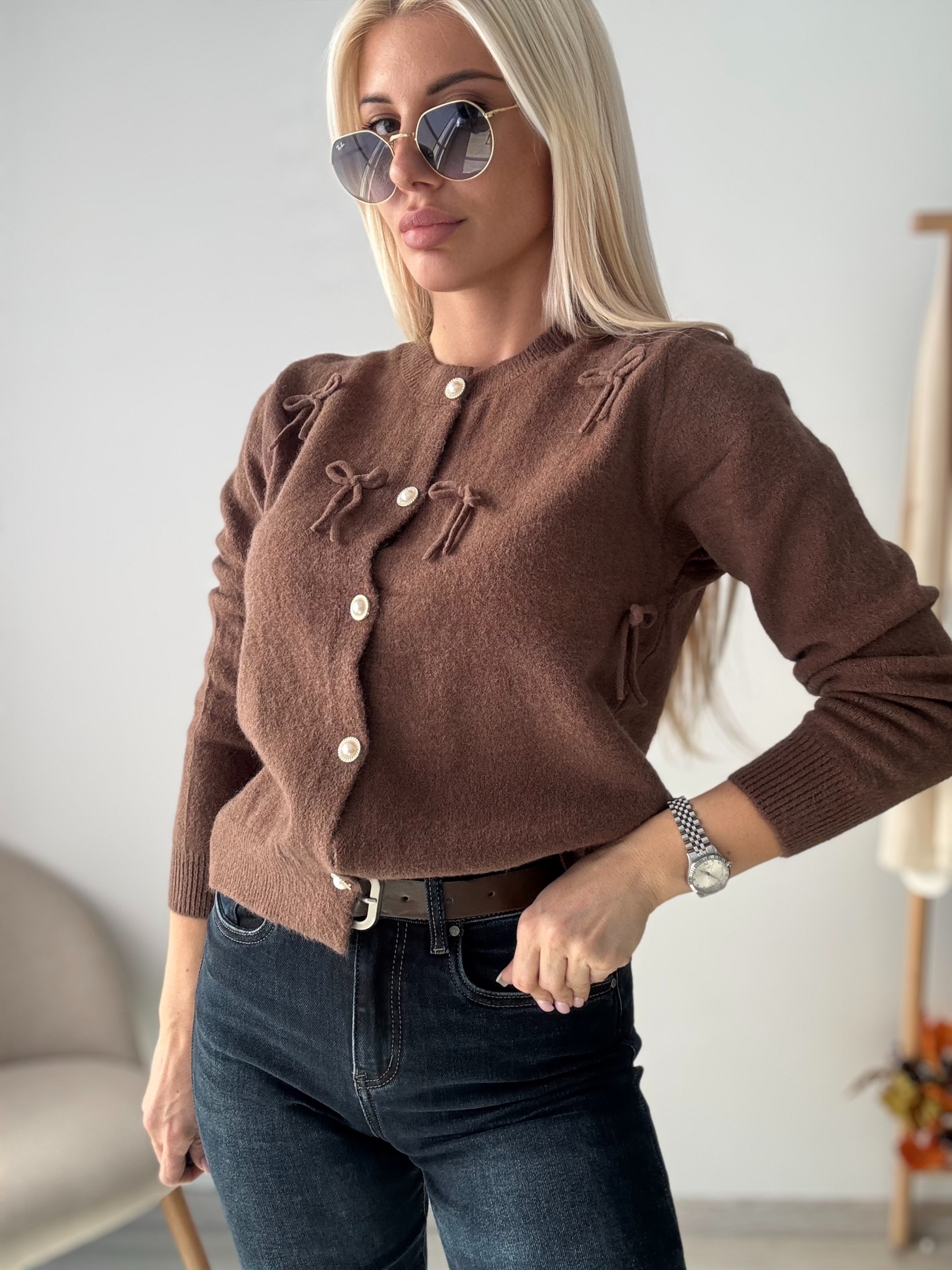 Не се колебайте да добавите тази кафява жилетка с панделки към вашата колекция! Поръчайте сега и се насладете на комфорта, стила и увереността, които тя ви предлага.