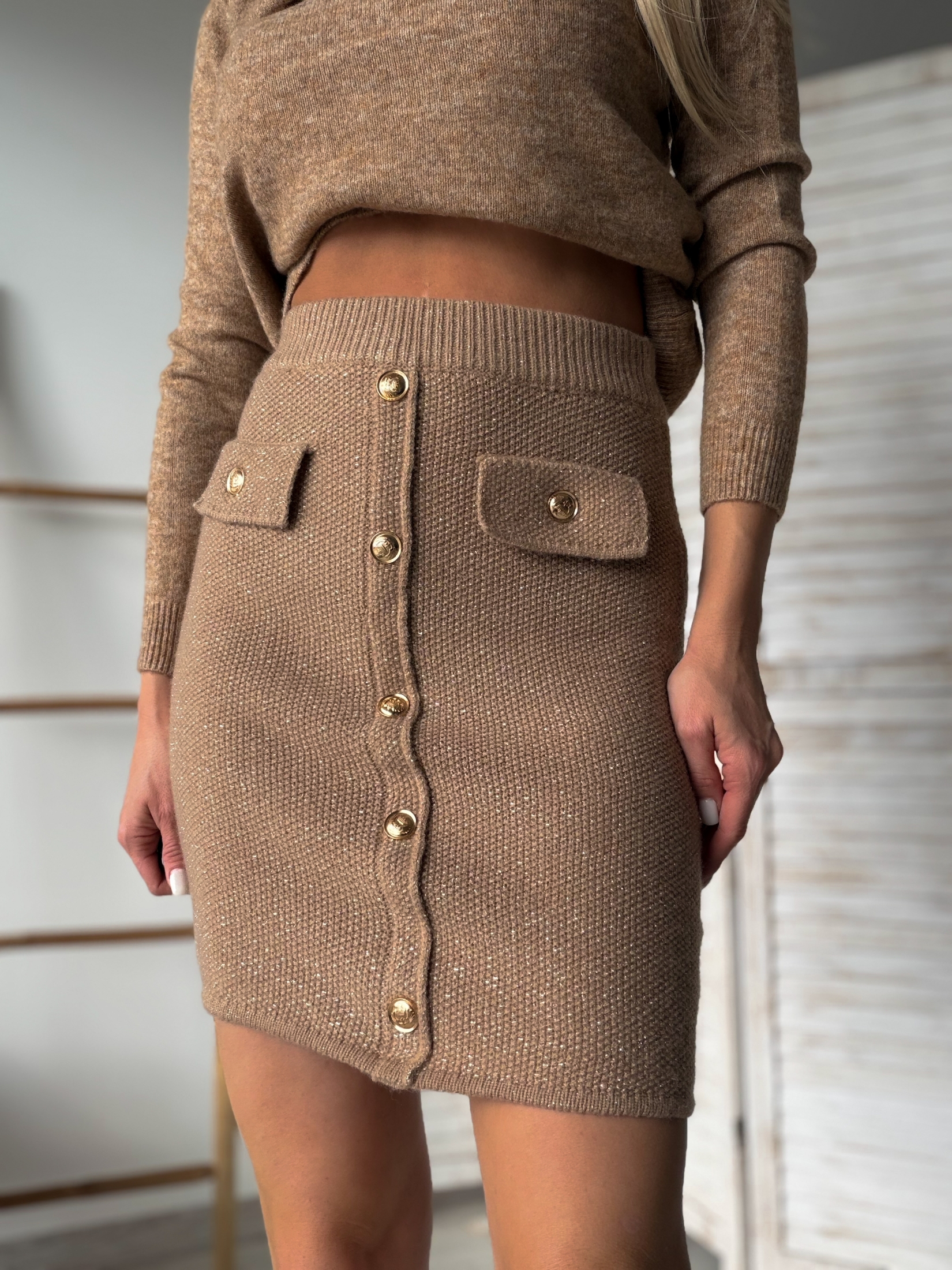 Облечете се в елегантност с тази бежова пола по тялото с ламе!