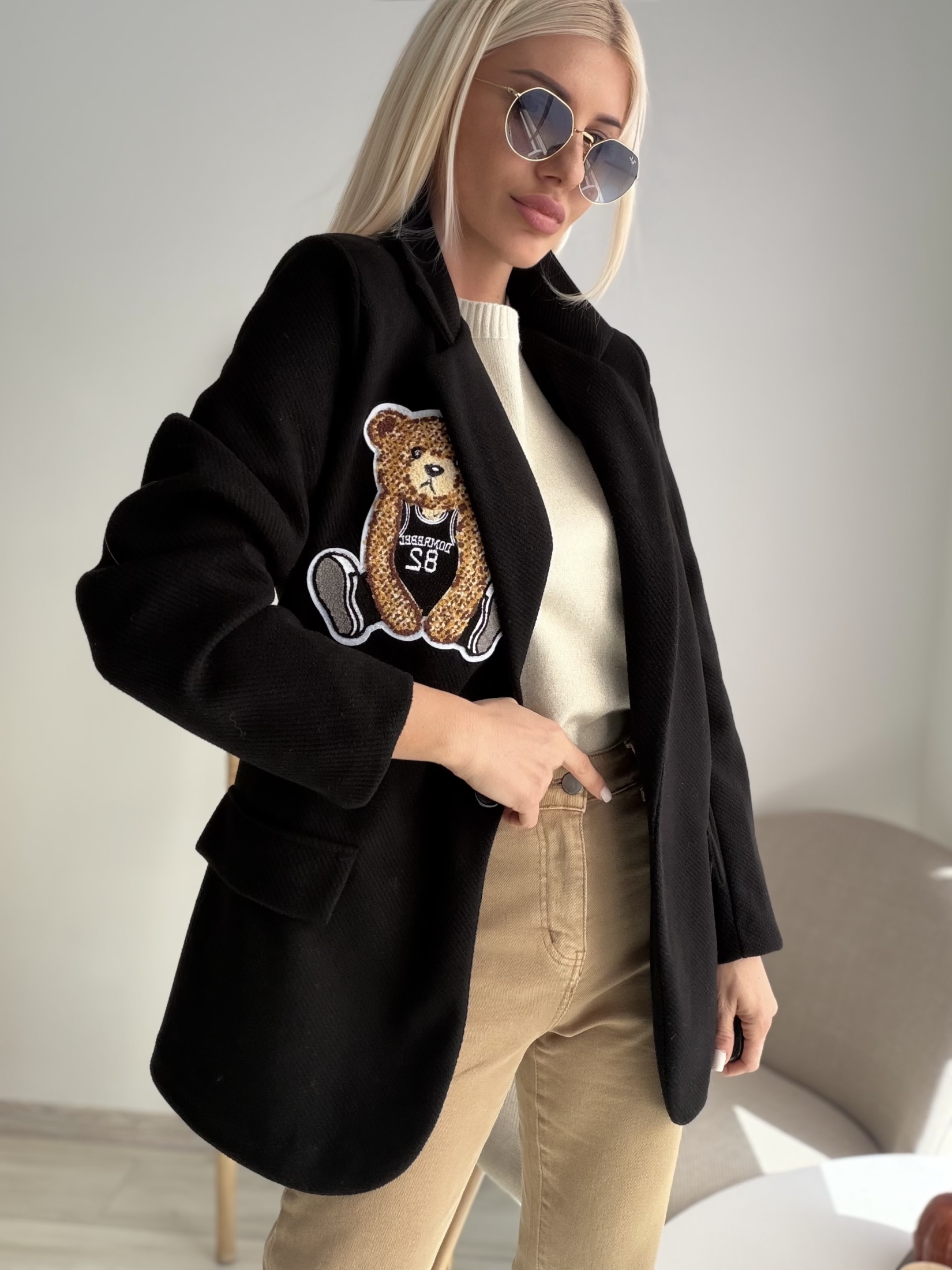 Нашето черно палто с мече е перфектният избор за студените дни!
