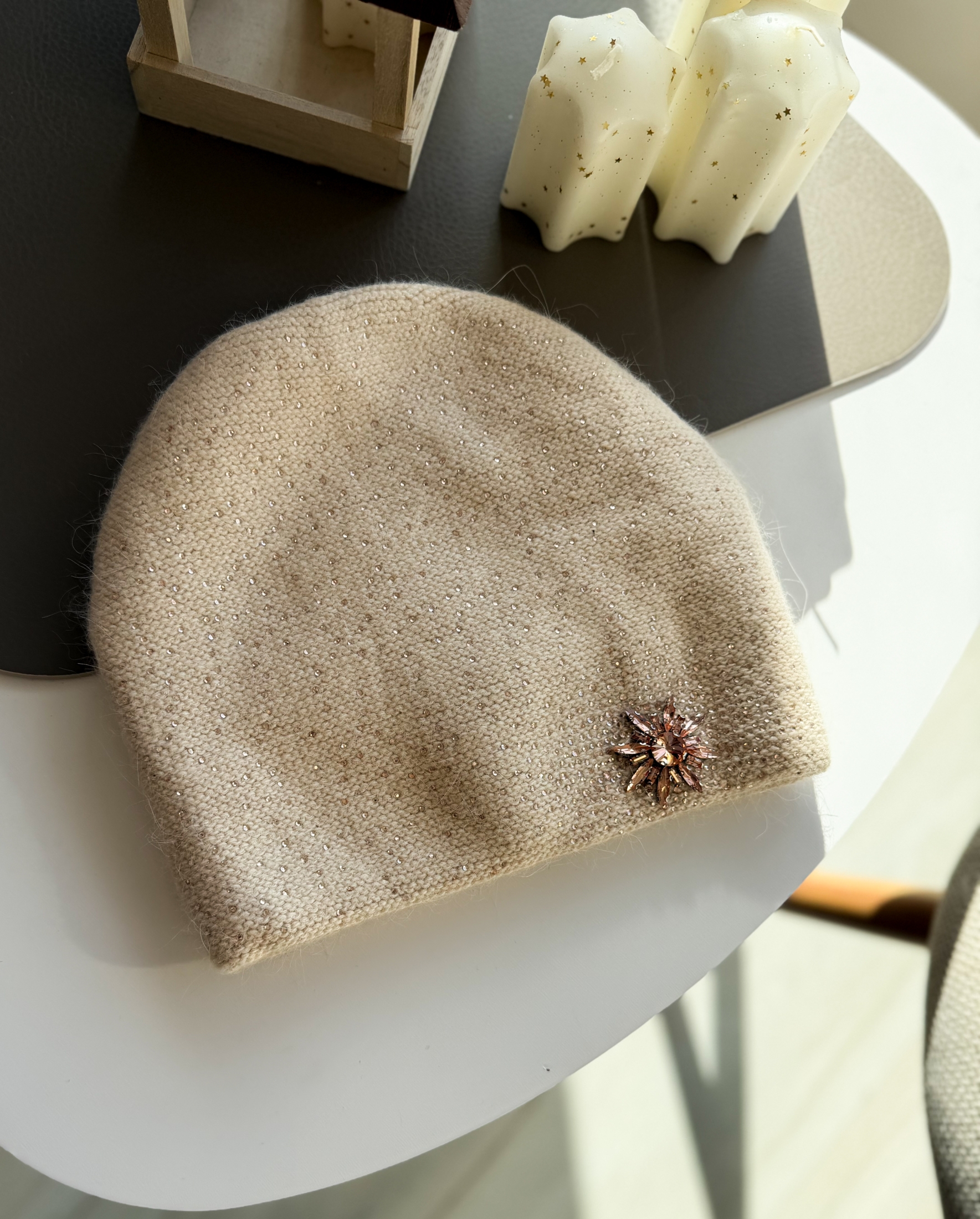 Елегантна шапка с камъни в цвят екрю - Добавете блясък към вашия зимен стил!