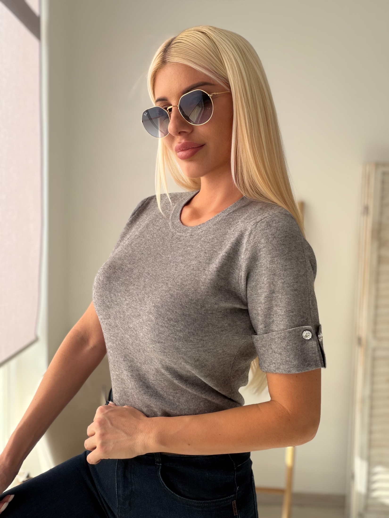 - Универсален сив цвят: Неутралният сив нюанс позволява лесно съчетаване с различни долнища, от дънки до поли.