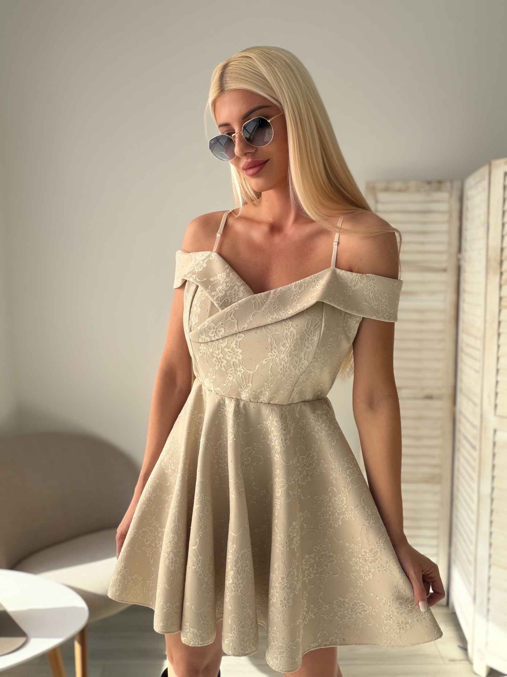 Изискана и нежна, тази разкроена рокля в цвят екрю е перфектният избор за специални поводи, когато искате да изглеждате елегантно и стилно. Със своята класическа кройка и деликатни детайли, тя ще подчертае вашата женственост и ще ви осигури комфорт през целия ден или вечер.