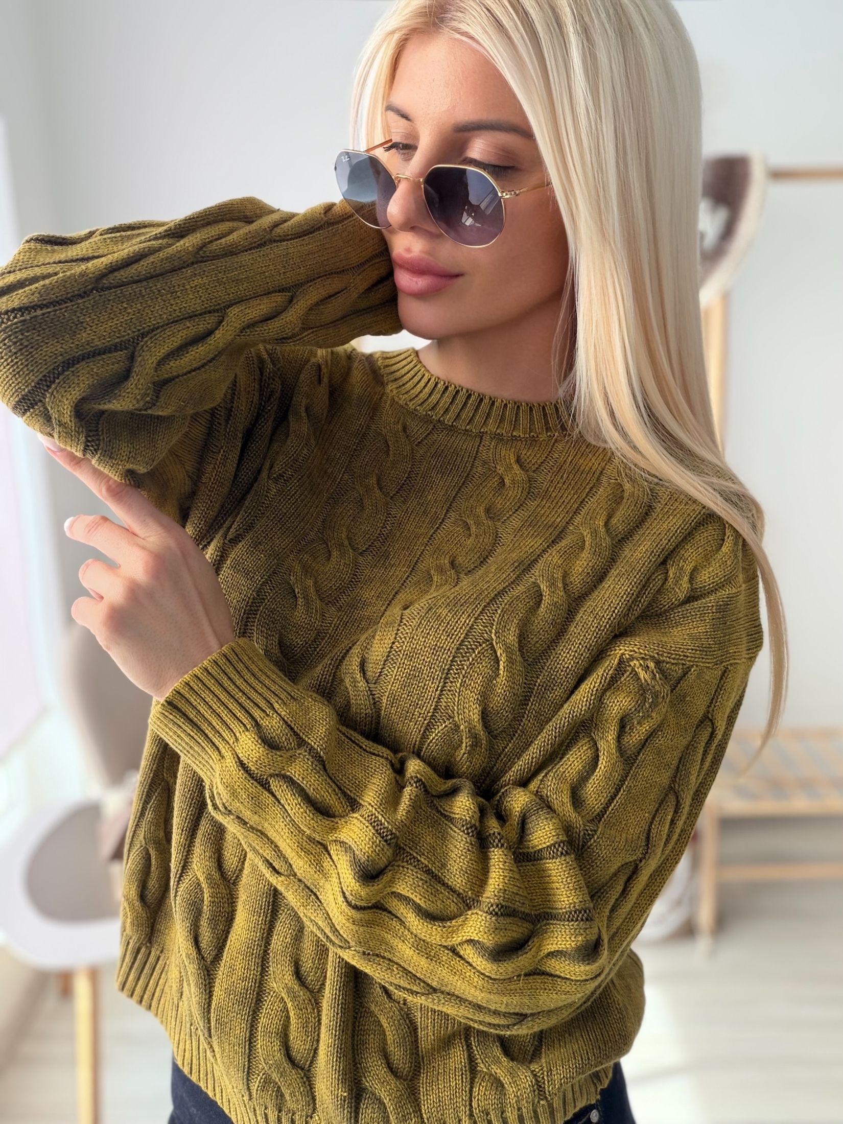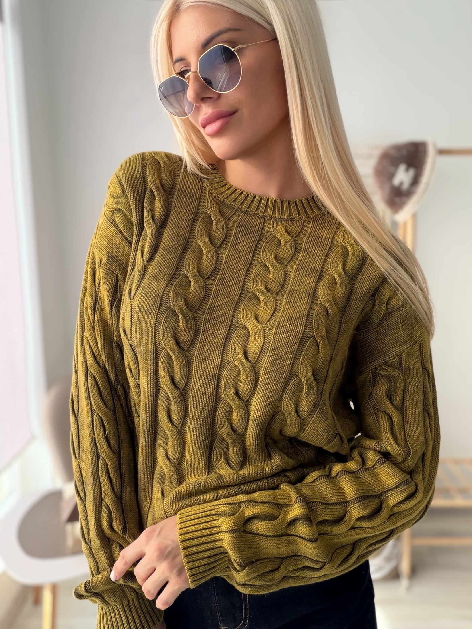 Насладете се на комфорта и стила с нашия пуловер от чист памук в модерен цвят горчица! Този пуловер е идеалното допълнение към вашия гардероб, осигурявайки ви топлина и елегантност през целия ден.