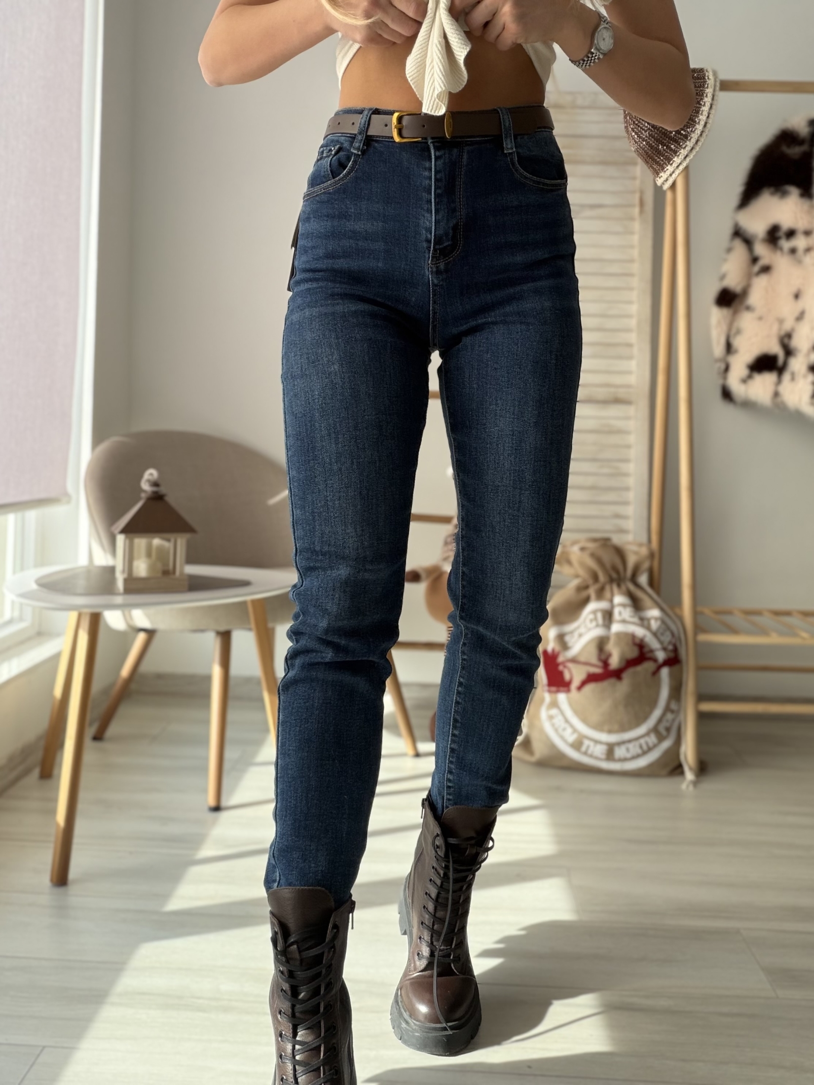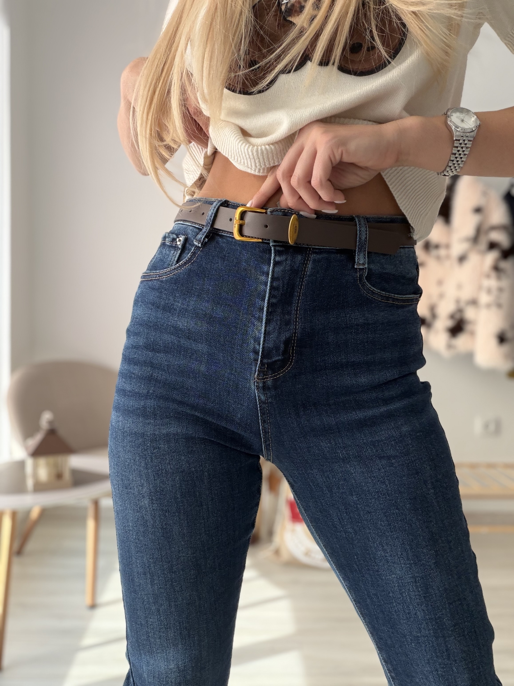 Стилен и елегантен избор за всеки ден - дънки по тялото с кафяв колан. Подчертават фигурата ви и осигуряват комфорт.