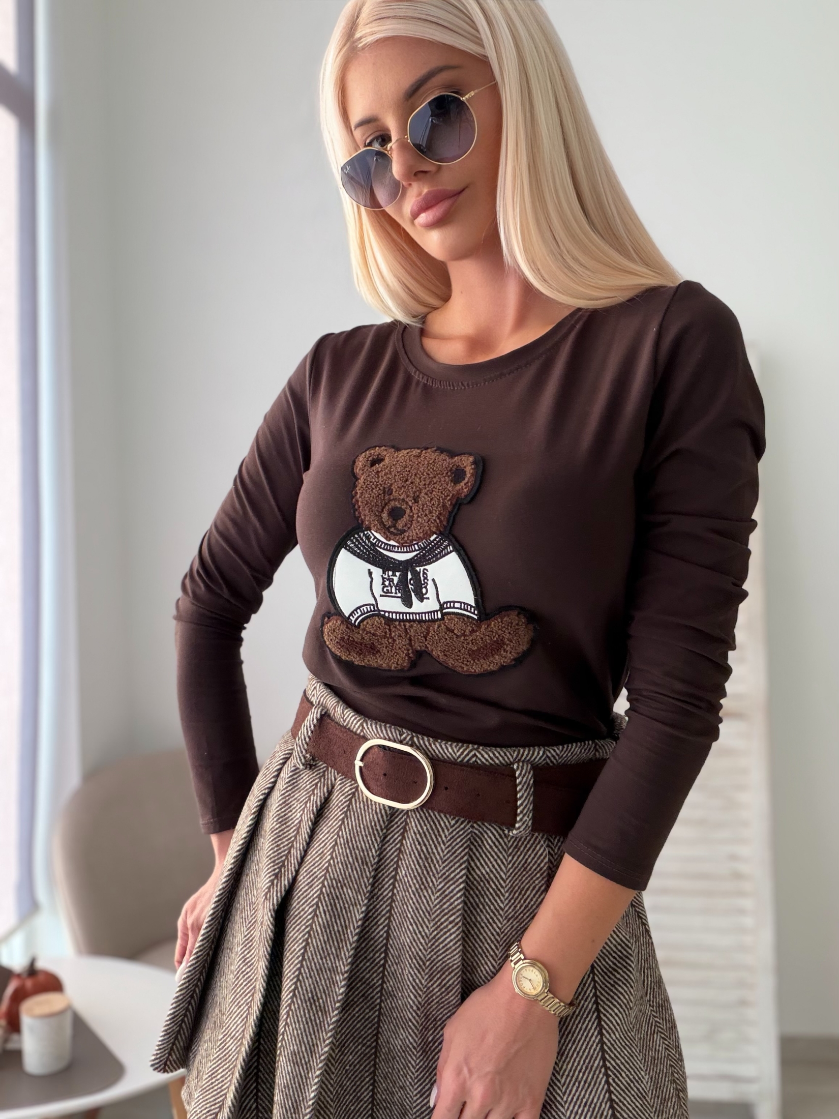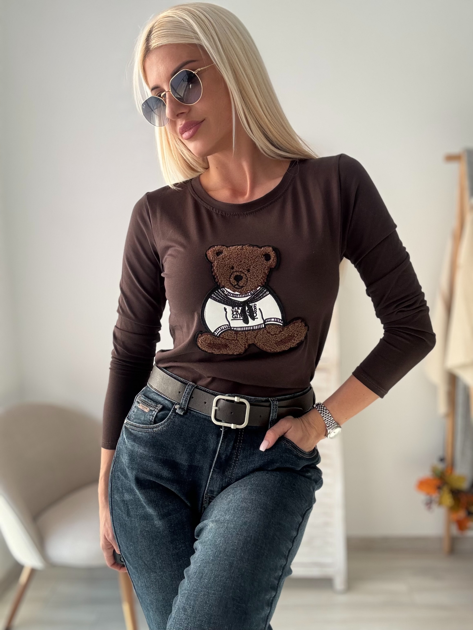 Очарователна кафява памучна блузка с апликация на сладко мече! Идеална за ежедневно носене, тази мека и удобна блузка е изработена от памук, осигуряваща комфорт през целия ден.