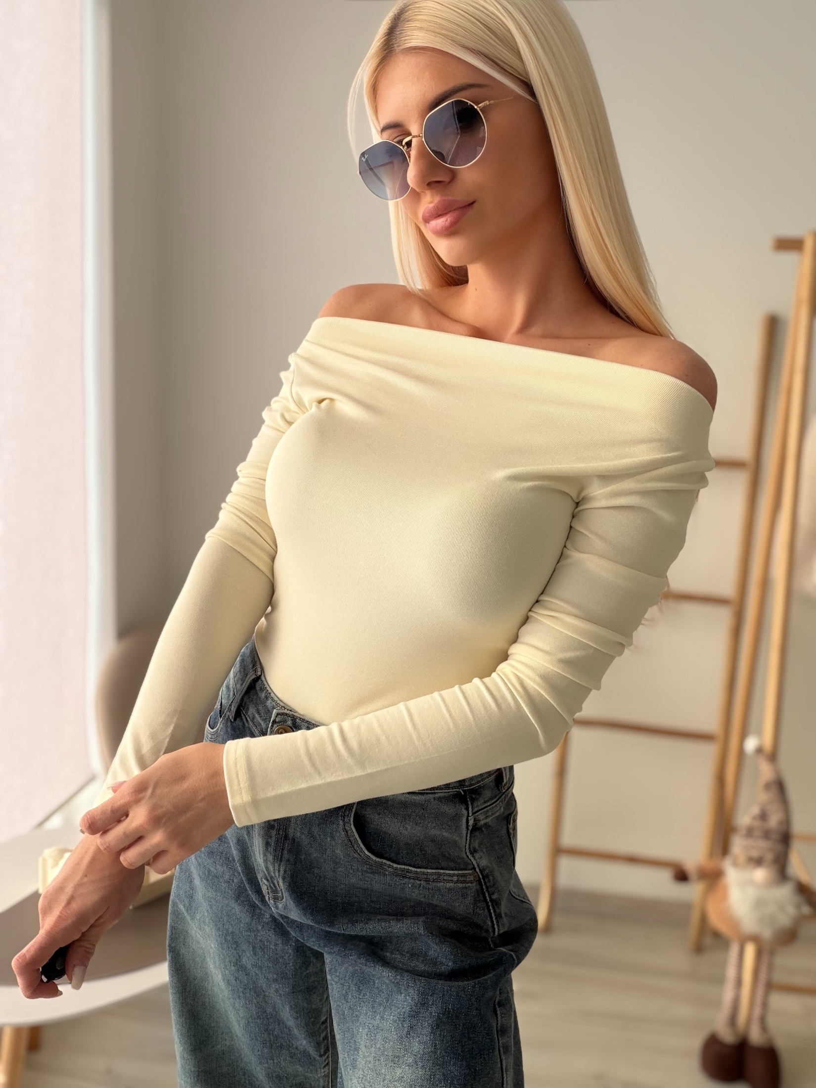Елегантна блуза "лодка" в нежен екрю цвят, идеална за всеки повод.