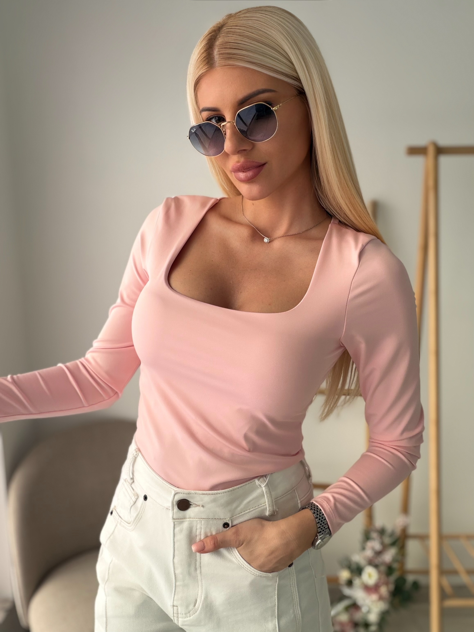 Розова блуза с квадратно деколте