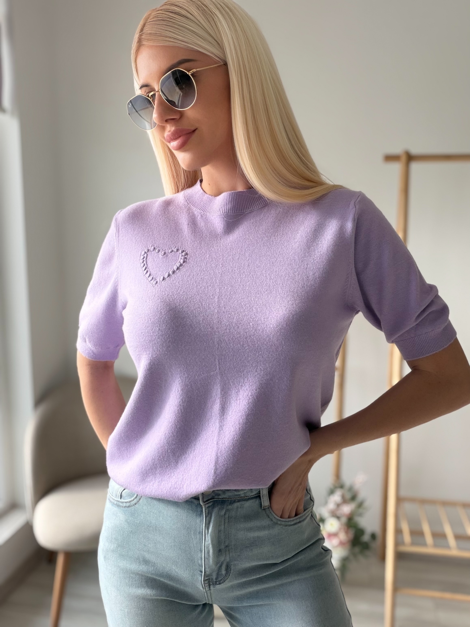 Начало Блузи Лилава тениска плетиво