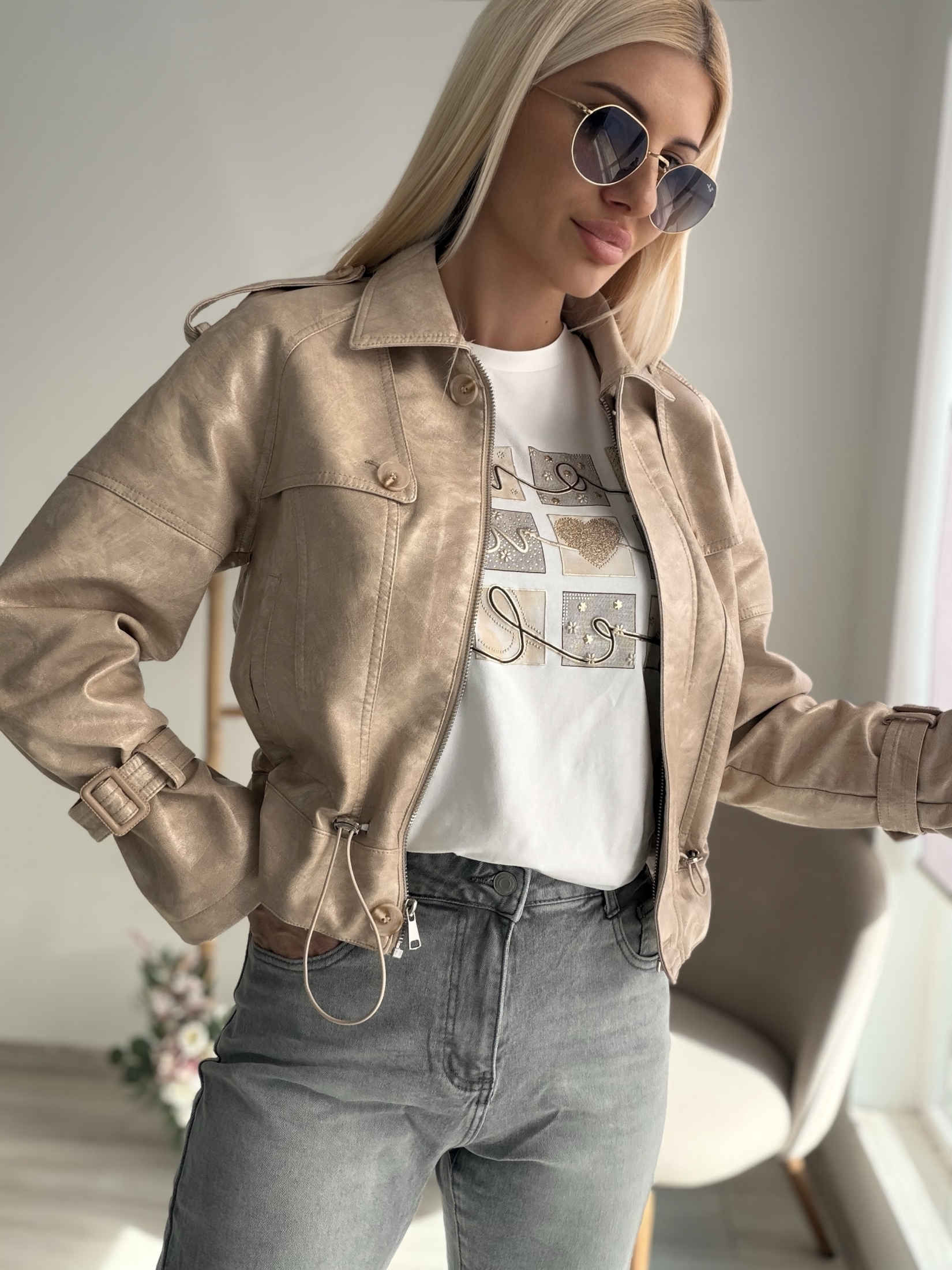 Бежово кожено яке