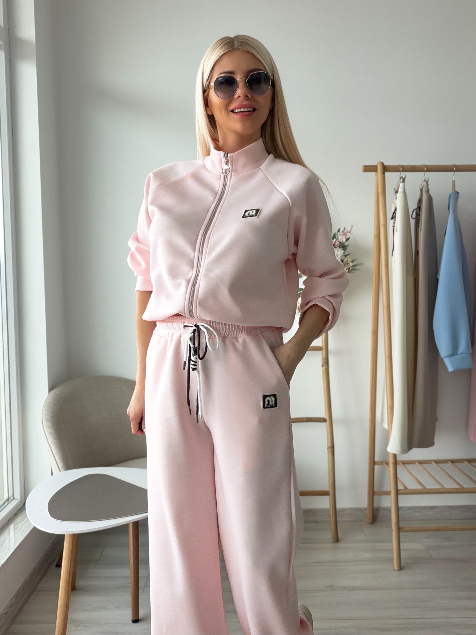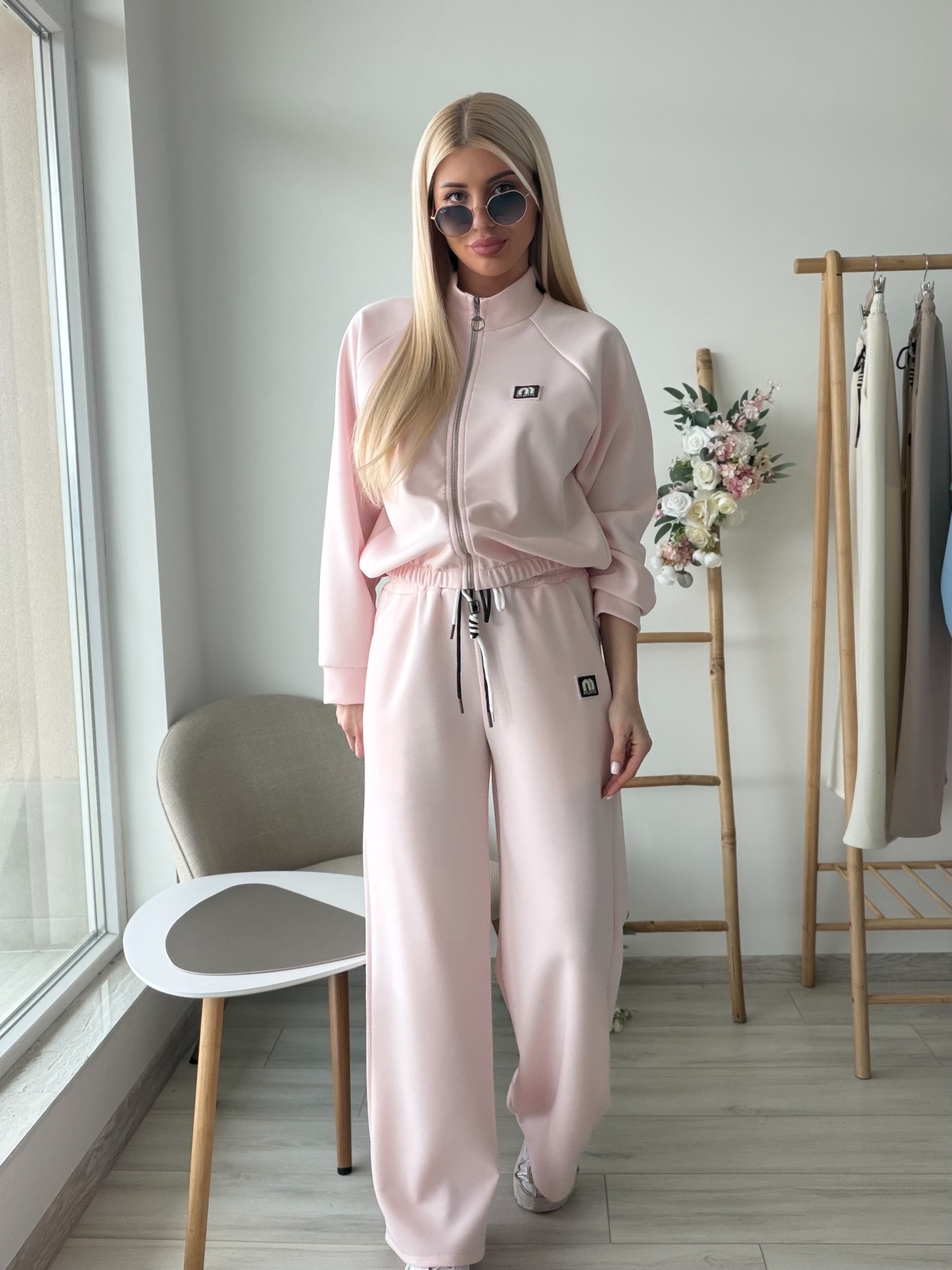 Женствен и изчистен комплект, който съчетава комфорт и модерна визия. Състои се от късо горнище с висока яка и цип и панталон с висока еластична талия и връзки за регулиране. Кройката стои свободно и подчертава силуета без да пристяга, което го прави идеален за целодневно носене. Меката материя е приятна на допир и запазва формата си, а нежният пудра розов цвят придава стилна и свежа визия. Подходящ както за ежедневие, разходки и пътуване, така и за по-подреден casual аутфит в комбинация с маратонки или кецове. Детайли: • Комплект от две части: горнище + панталон • Висока яка с цип • Еластична талия с връзки • Странични джобове • Свободна кройка • Плътна и комфортна материя Перфектен избор за модерна и удобна визия през сезон пролет/есен.
